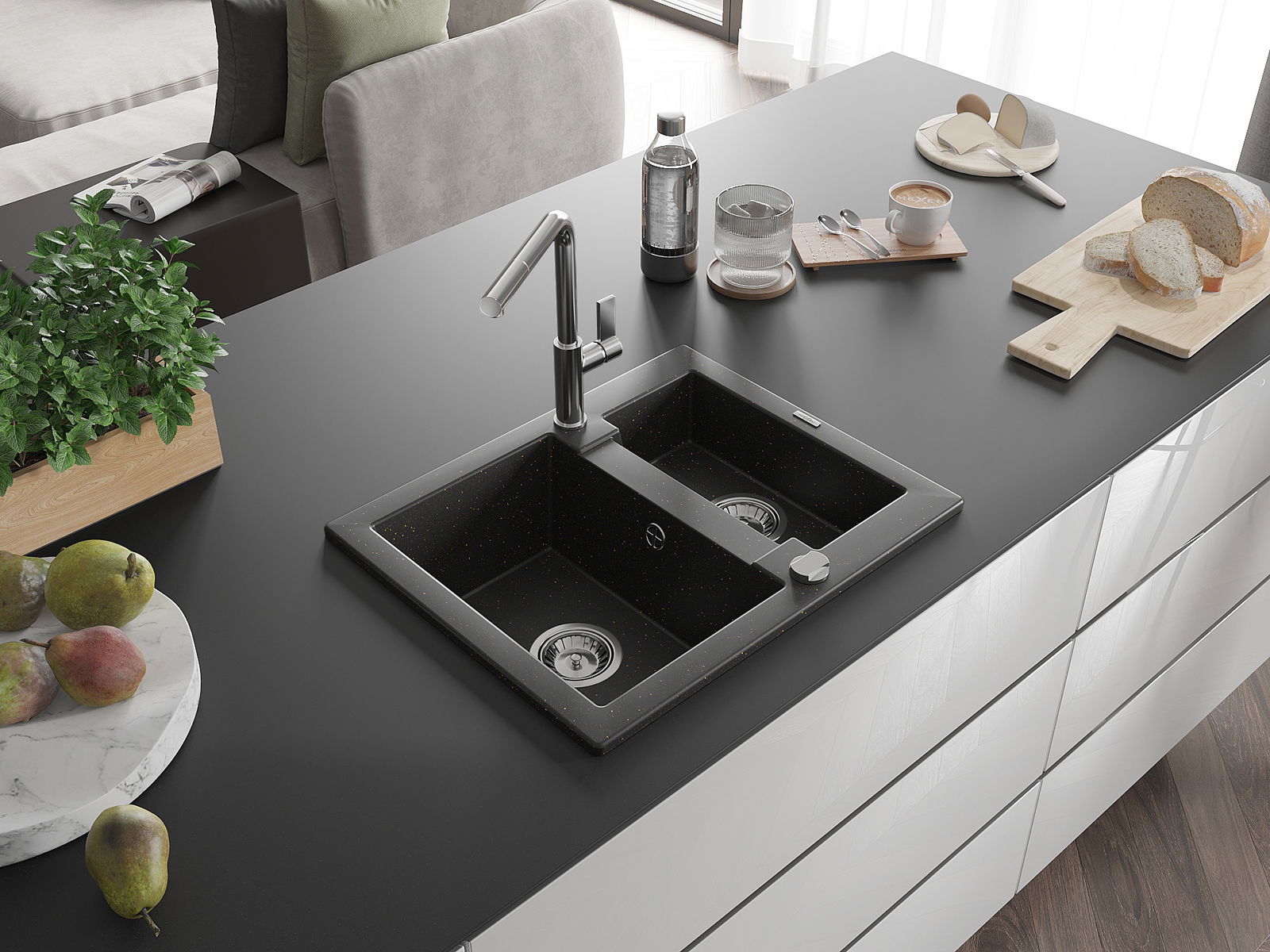 Povrch umývadla je odolný voči škvrnám a sfarbeniu, vďaka čomu sa ľahko čistí a zachováva si svoju farbu po dlhú dobu. Estetický a prakticky dopĺňajúci každú kuchyňu.