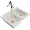 Mexen Carlos žulový drez 1,5-komorový s kuchynskou batériou Flora, čierny/zlatý metalik - 6518-75-670401-57-G