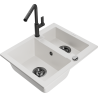 Povrch kuchynského drezu je odolný voči škvrnám a zafarbeniu, vďaka čomu sa ľahko udržiava a zachováva svoju farbu počas dlhého obdobia používania. Estetický a praktický doplnok pre každú kuchyňu.