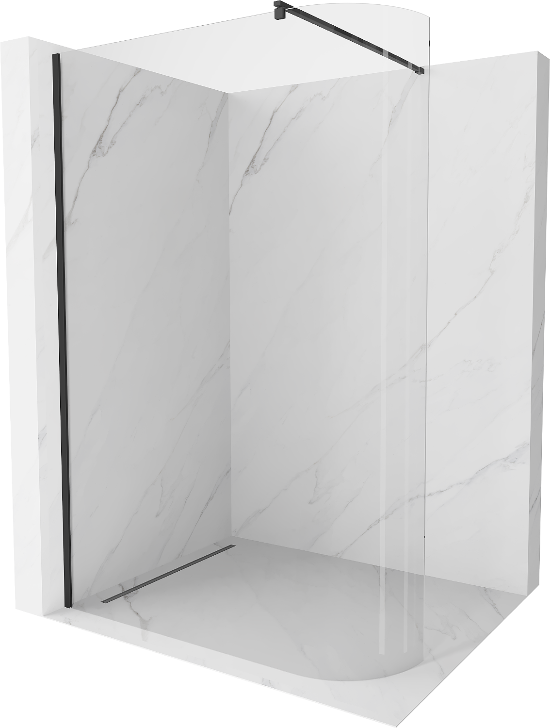 Mexen Kioto-R zaoblená sprchová stena Walk-in 100 x 200 cm, transparentná 8 mm, čierna - 800-100-101-70-06