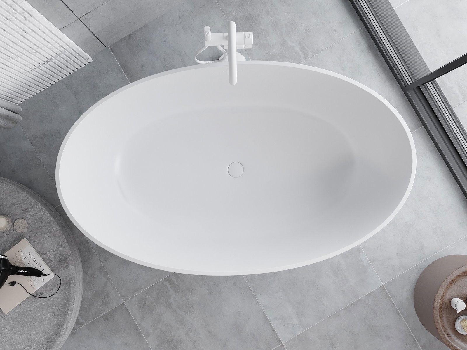 Mexen Parma je elegantná voľne stojaca vaňa, vyrobená z konglomerátu s rozmermi 160 x 95 cm. Jej krásna, matná biela farba pridáva každej kúpeľni moderný vzhľad. Vďaka odtoku umiestnenému v strede a prepadovému otvoru je používanie vane mimoriadne komfortné. Materiál je odolný voči matovaniu a UV žiareniu, čo zaručuje dlhodobý vizuálny efekt. V balení nájdete sifón a zátku typu klik-klak. Je to ideálna voľba pre tých, ktorí hľadajú harmóniu a štýl.