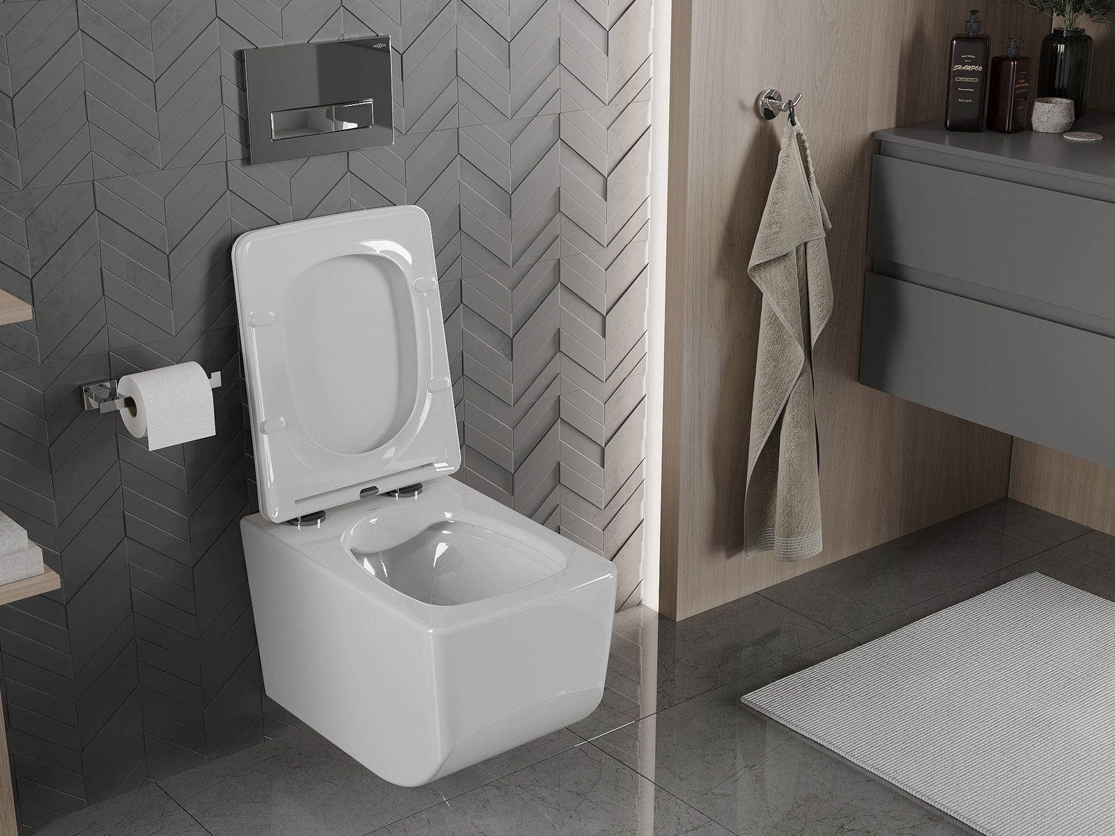 Technológia Rimless zabezpečuje voľný tok vody v celej komore, čo uľahčuje udržiavanie WC misy v čistote.