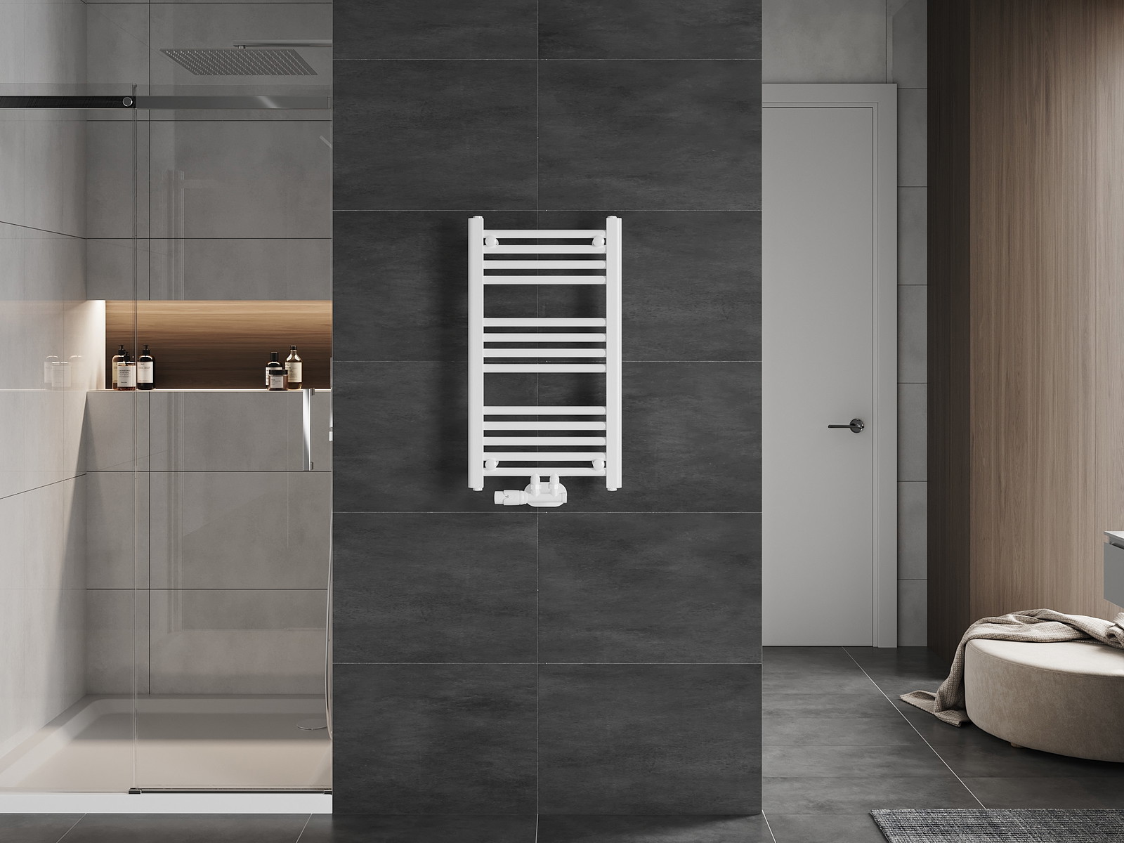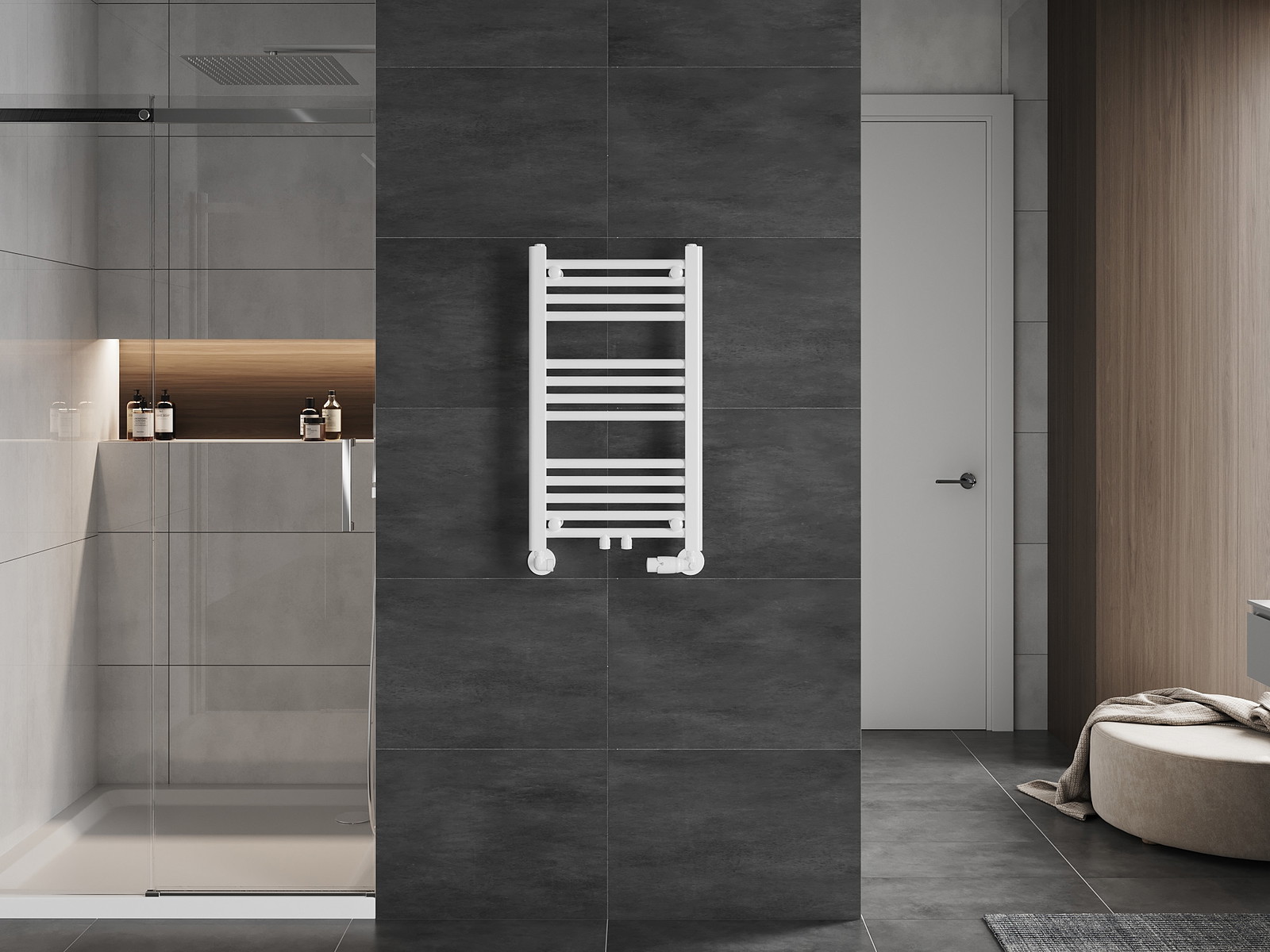 Mexen Mars je štýlový a funkčný kúpeľňový radiátor ideálny pre každú modernú kúpeľňu. Ponúka rozmery 700x400 mm a výkon kúrenia 238 W pri teplote 75/65/20 °C, čo zaisťuje optimálne vykurovanie. Vyrobený z odolnej ocele, má biely, korózii odolný lakovaný povrch (RAL 9016). Reakcia na oheň triedy A1 a maximálna pracovná teplota do 95 °C garantujú bezpečnosť. Možnosť montáže vykurovacieho telesa a rôzne možnosti pripojenia ho robia flexibilným riešením. Hmotnosť 4,06 kg a celkový pracovný tlak 0,6 Mpa potvrdzujú jeho pevnosť.