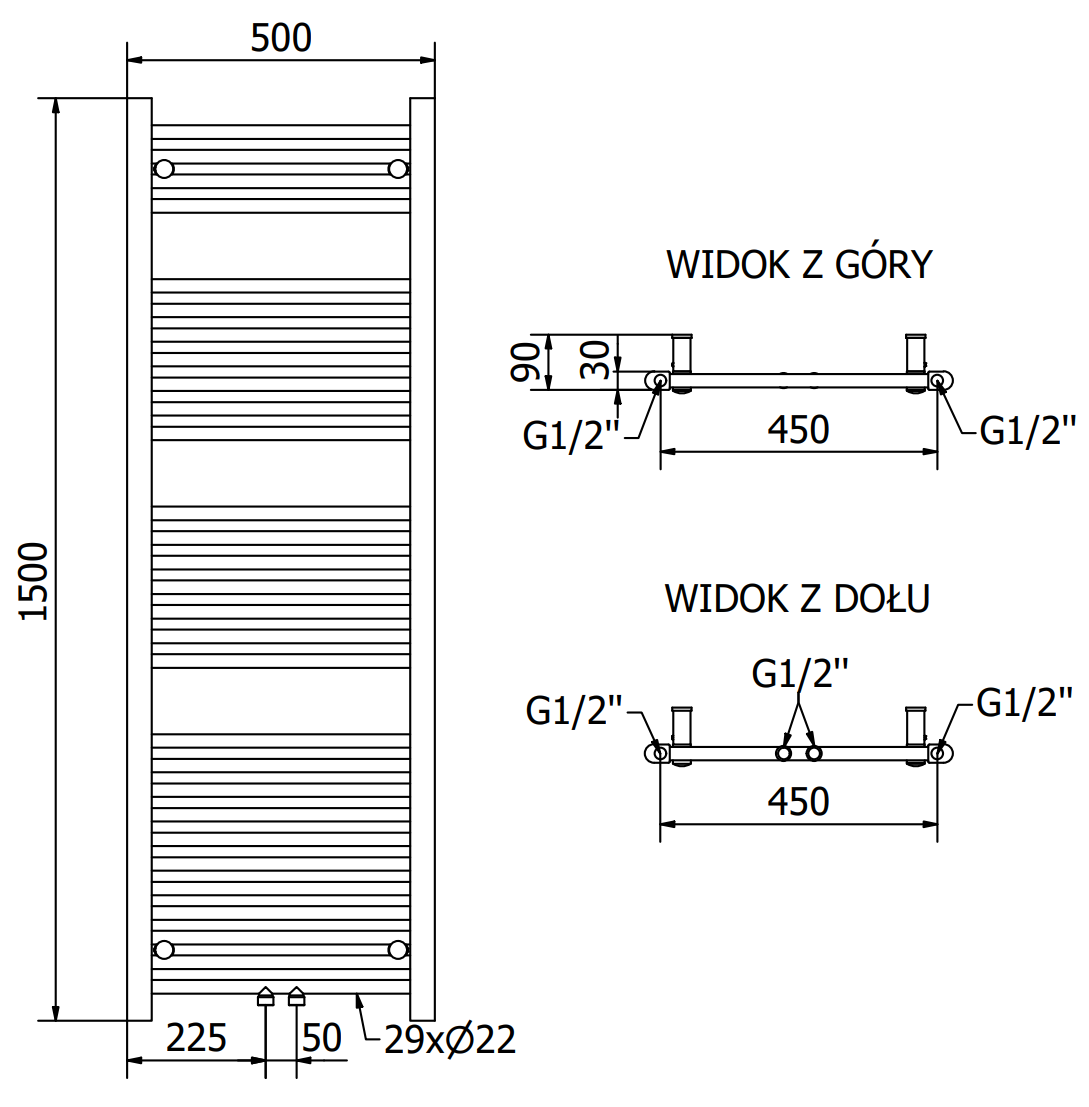 - 4xG ½″ zhora a zo spodku z pravej alebo ľavej strany