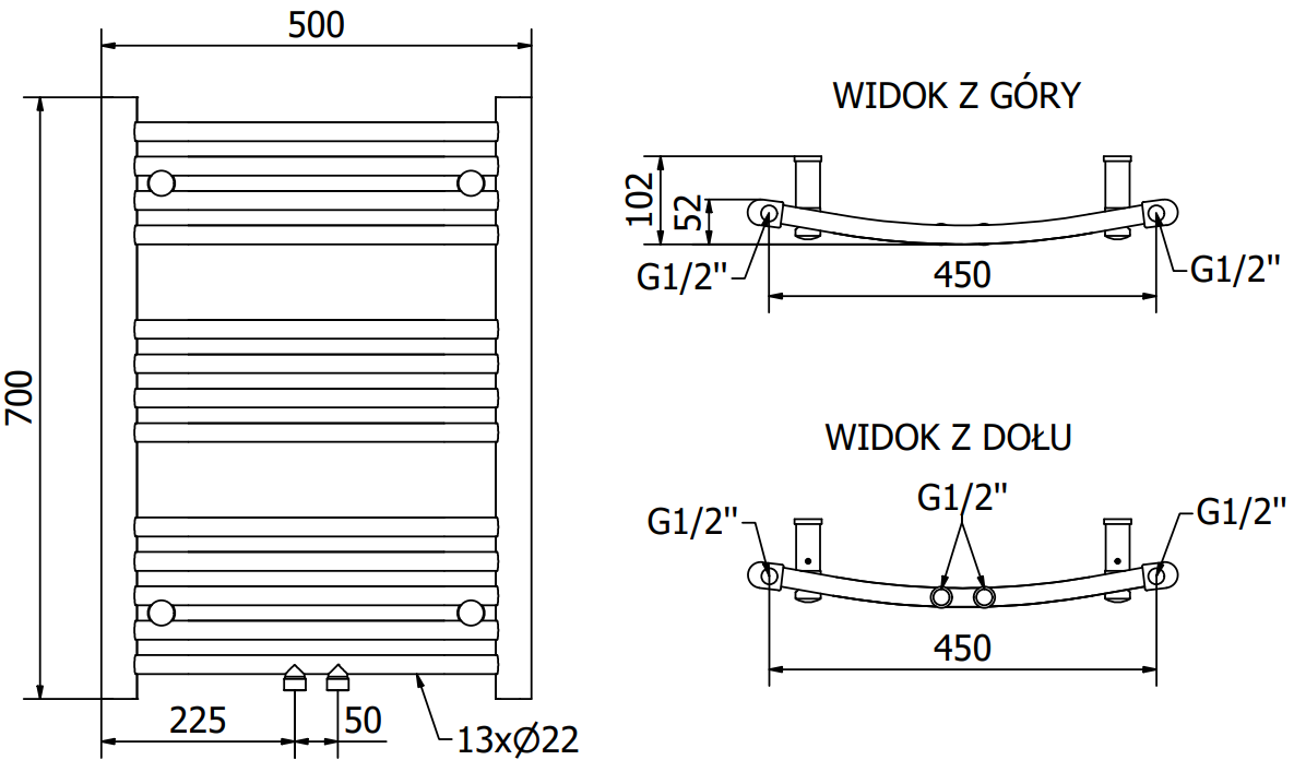 - 4xG ½″ zhora a zdola z pravej alebo ľavej strany