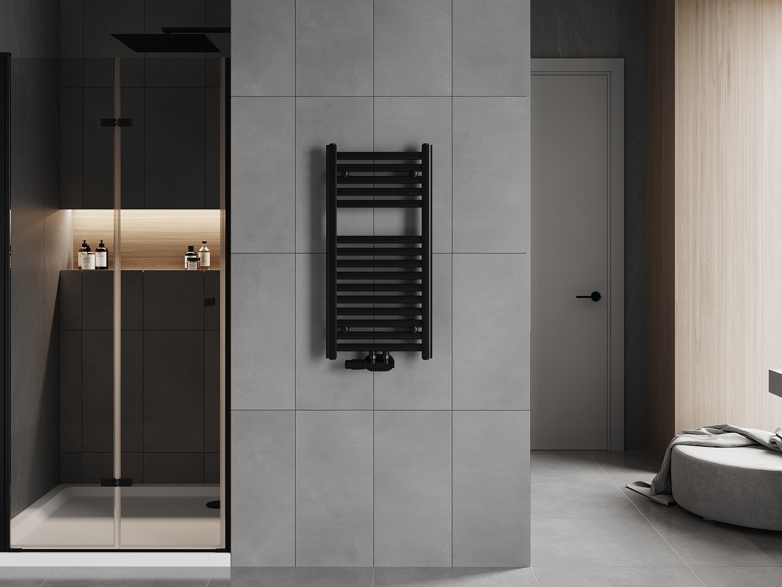 Mexen Hades je elegantný čierny kúpeľňový radiátor s rozmermi 800 x 400 mm, ideálny pre moderné interiéry. Vyrobený z trvácnej ocele, má vysokokvalitný lakovaný povrch odolný voči korózii. Hrejivý výkon na úrovni 320 W poskytuje efektívne vykurovanie aj pri maximálnej prevádzkovej teplote 95 °C a tlaku 0,6 Mpa. Vďaka možnosti montáže elektrickej tyče a flexibilným možnostiam pripojenia je Mexen Hades univerzálnou voľbou pre každú miestnosť. Súčasťou balenia sú závesy, montážna sada a odvzdušňovač.