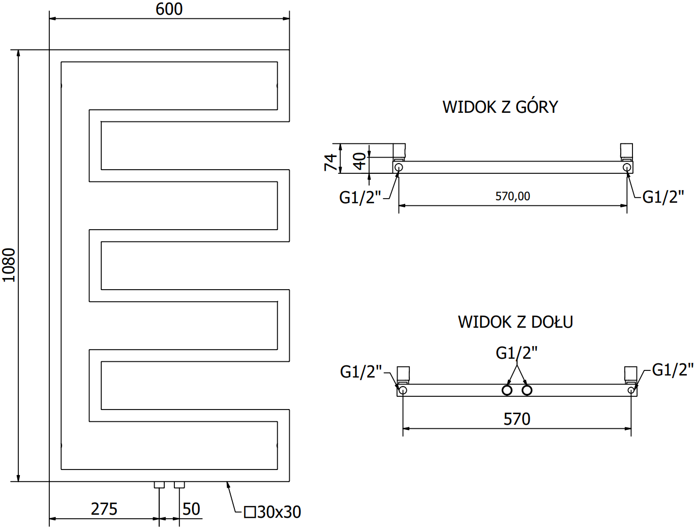 - 4xG ½″ zhora a zdola z pravej alebo ľavej strany