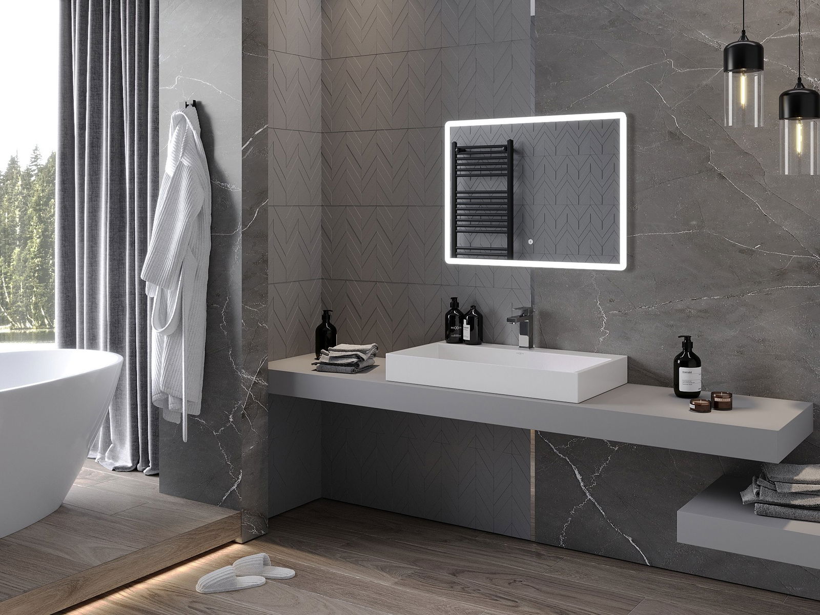 Podsvietenie LED v zrkadle je praktický prvok, ktorý uľahčuje každodennú starostlivosť vďaka možnosti ideálneho osvetlenia tváre. Podsvietenie dáva kúpeľni moderný povrch a zdôrazňuje jej elegantný dekor.