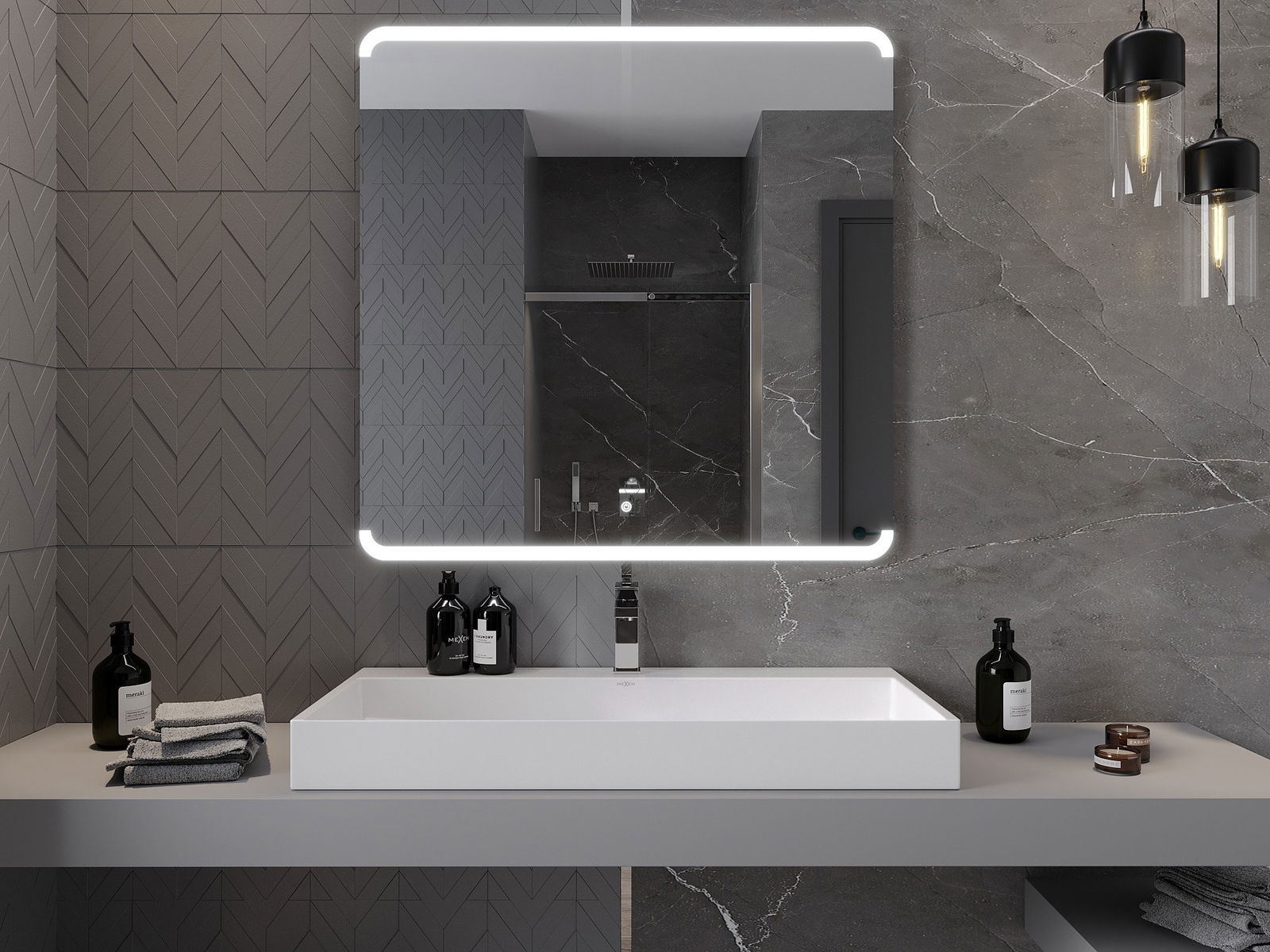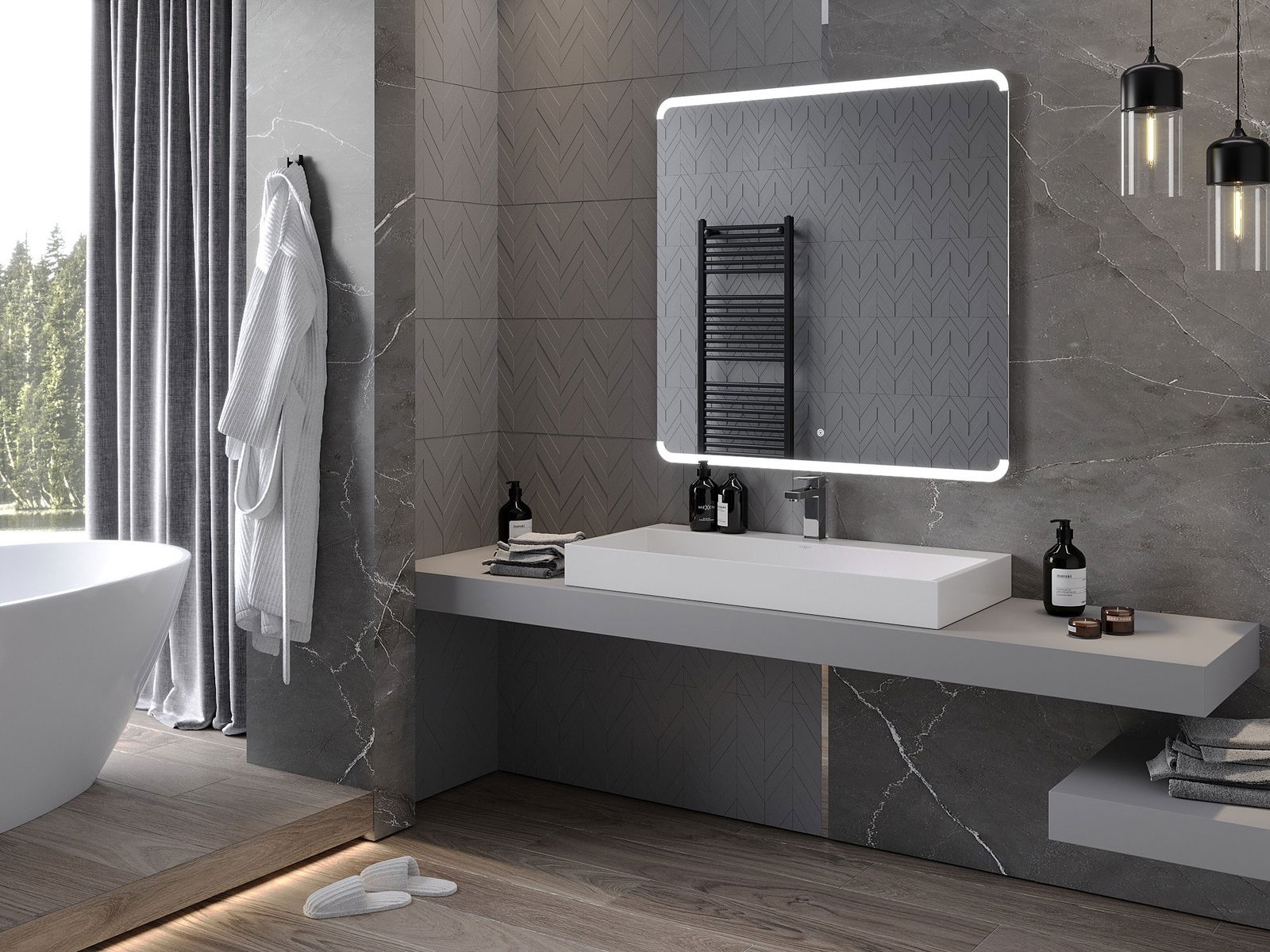Podsvietenie LED v zrkadle je praktický prvok, ktorý uľahčuje každodennú starostlivosť vďaka možnosti ideálneho osvetlenia tváre. Podsvietenie dáva kúpeľni moderný povrch a zdôrazňuje jej elegantný dekor.