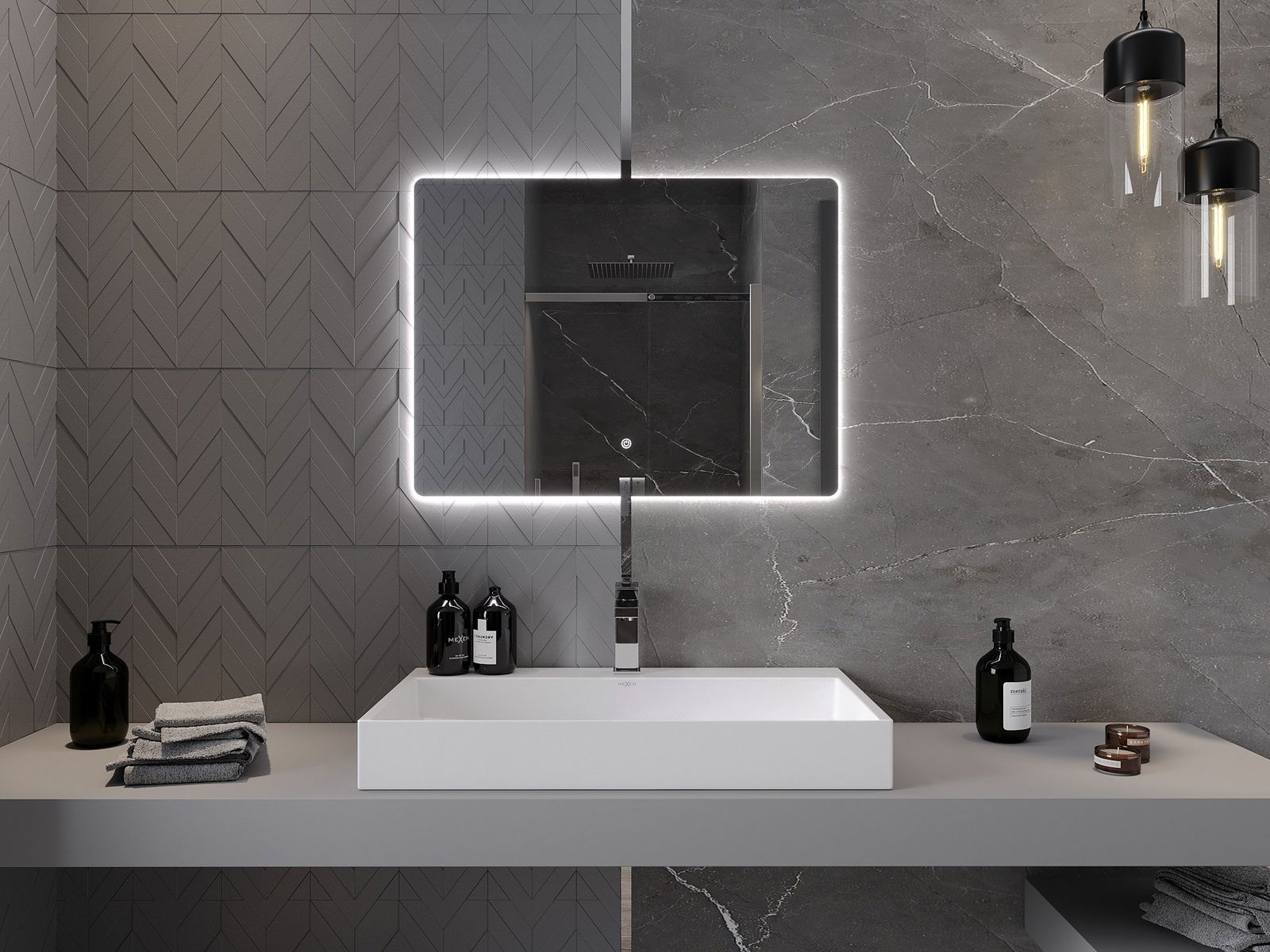 Zrkadlové osvetlenie je možné začať jednoduchým a pohodlným spôsobom dotykom spínača na povrchu zrkadla. To umožňuje rýchle osvetlenie, bez toho, aby ste museli siahať po ďalšom tradičnom osvetlení.