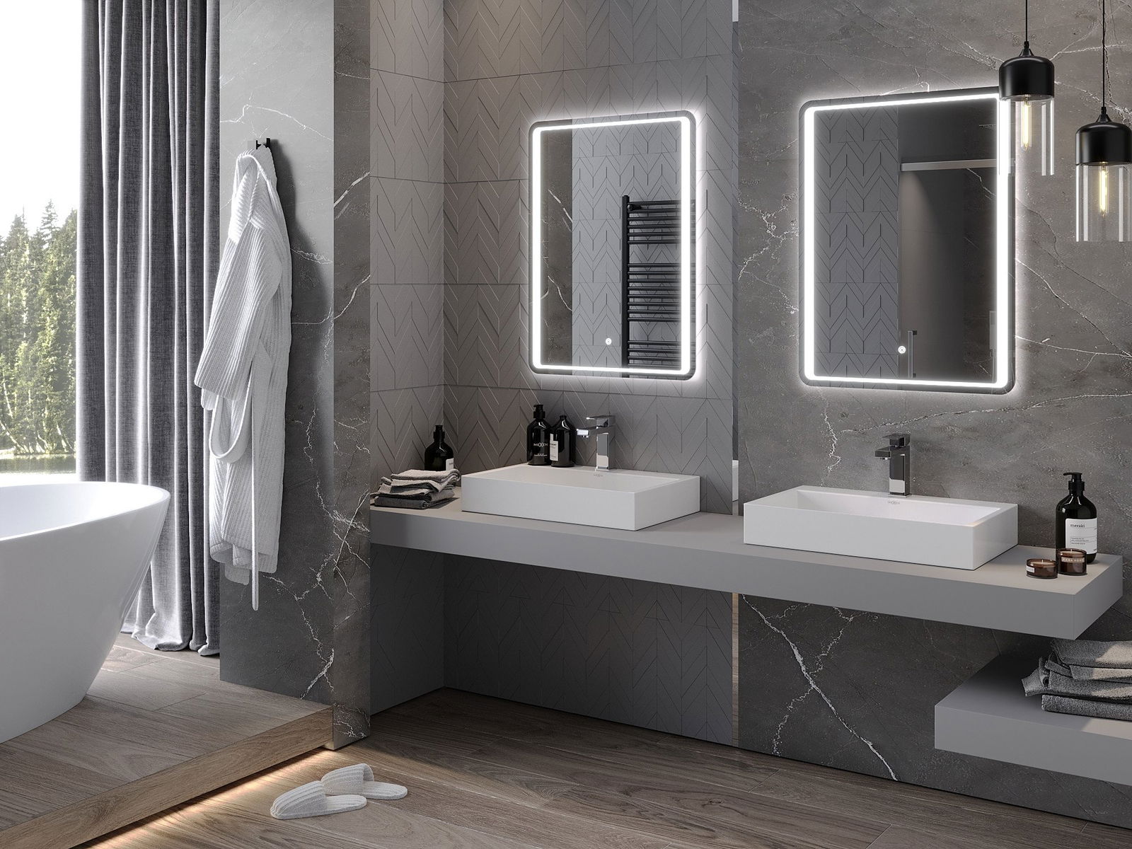 Podsvietenie LED v zrkadle je praktický prvok, ktorý uľahčuje každodennú starostlivosť vďaka možnosti ideálneho osvetlenia tváre. Podsvietenie dáva kúpeľni moderný povrch a zdôrazňuje jej elegantný dekor.