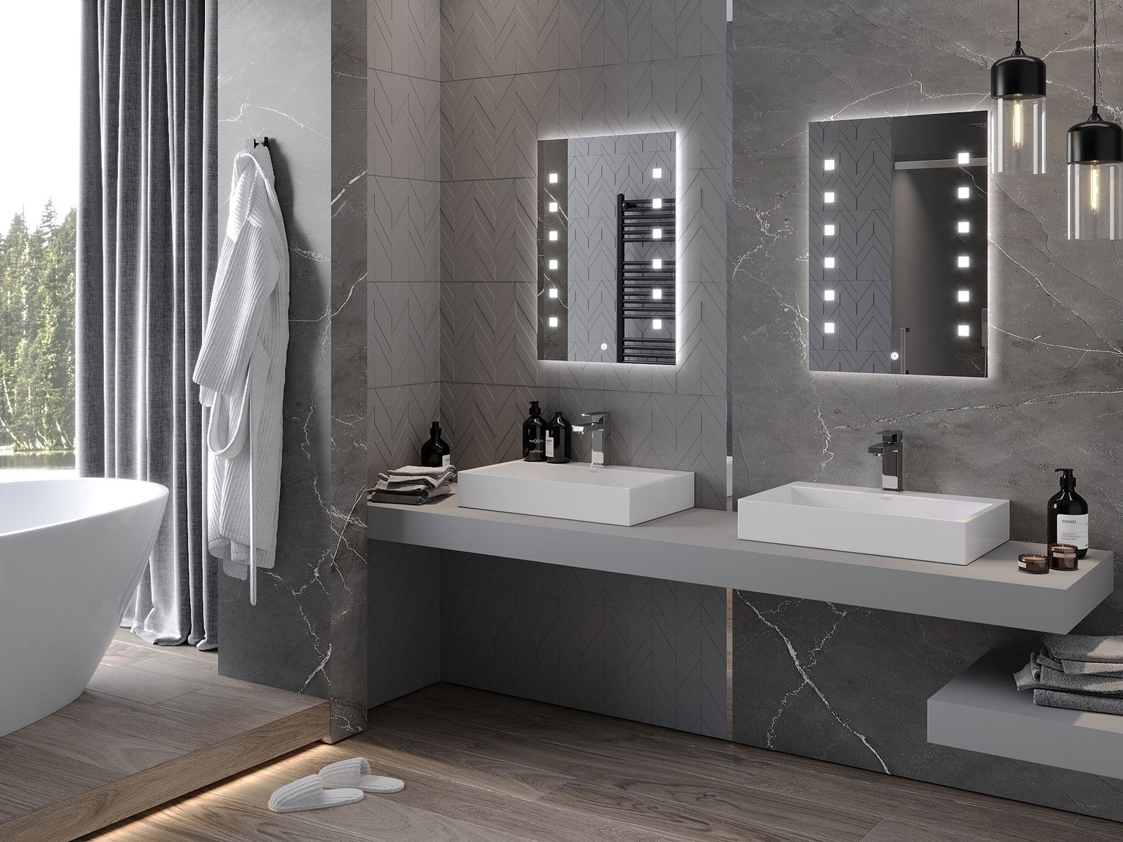 Podsvietenie LED v zrkadle je praktický prvok, ktorý uľahčuje každodennú starostlivosť vďaka možnosti ideálneho osvetlenia tváre. Podsvietenie dáva kúpeľni moderný povrch a zdôrazňuje jej elegantný dekor.