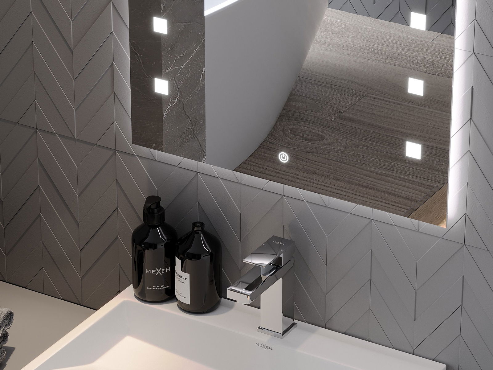 Zrkadlové osvetlenie je možné začať jednoduchým a pohodlným spôsobom dotykom spínača na povrchu zrkadla. To umožňuje rýchle osvetlenie, bez toho, aby ste museli siahať po ďalšom tradičnom osvetlení.