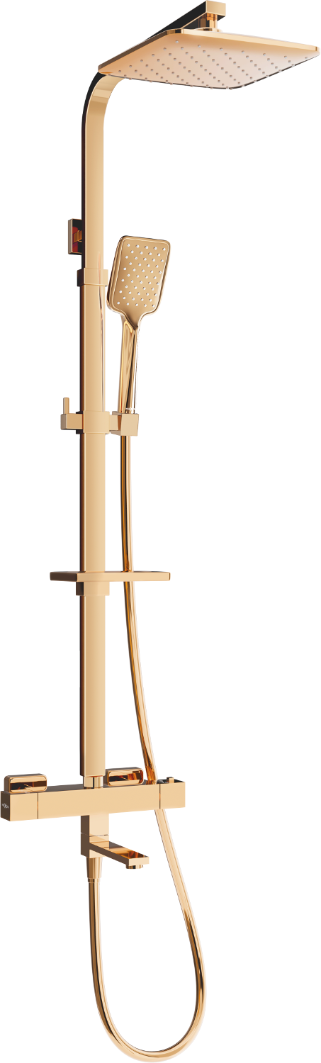 Mexen CQ62 súprava vaňovo-sprchová s dažďovou hlavicou a termostatickou batériou, ružové zlato - 779106295-60