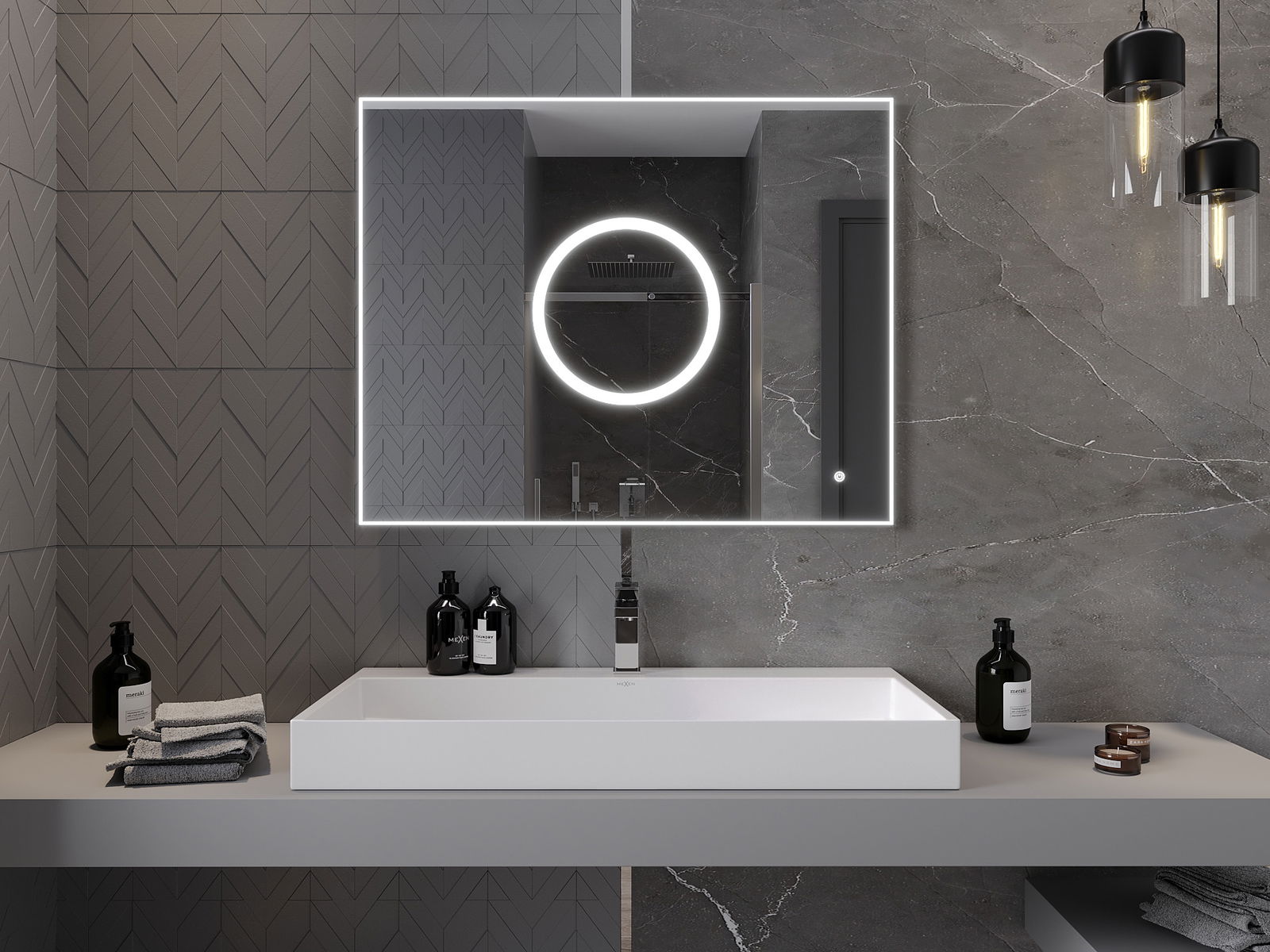 Zrkadlové osvetlenie je možné začať jednoduchým a pohodlným spôsobom dotykom spínača na povrchu zrkadla. To umožňuje rýchle osvetlenie, bez toho, aby ste museli siahať po ďalšom tradičnom osvetlení.
