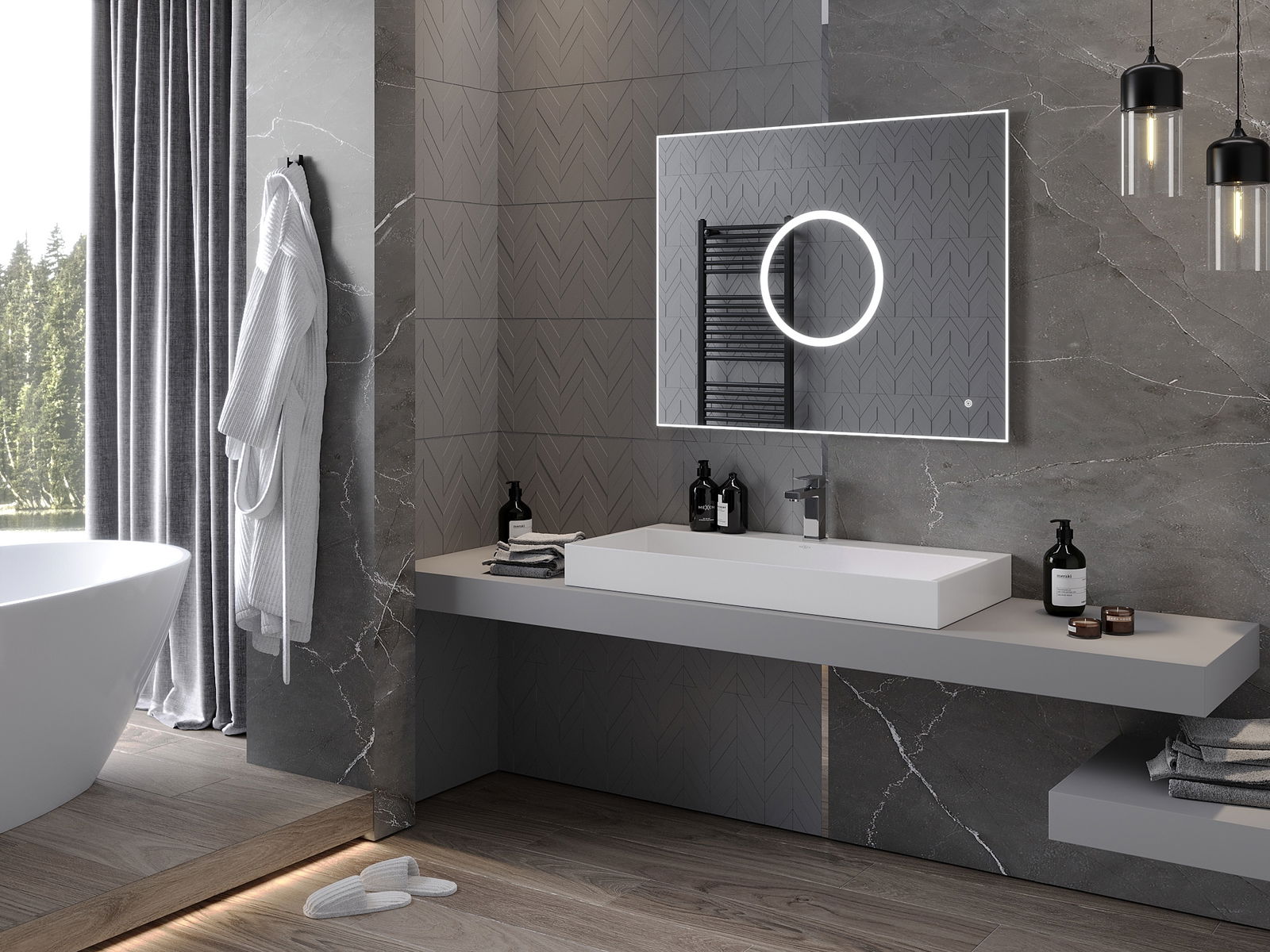 Podsvietenie LED v zrkadle je praktický prvok, ktorý uľahčuje každodennú starostlivosť vďaka možnosti ideálneho osvetlenia tváre. Podsvietenie dáva kúpeľni moderný povrch a zdôrazňuje jej elegantný dekor.