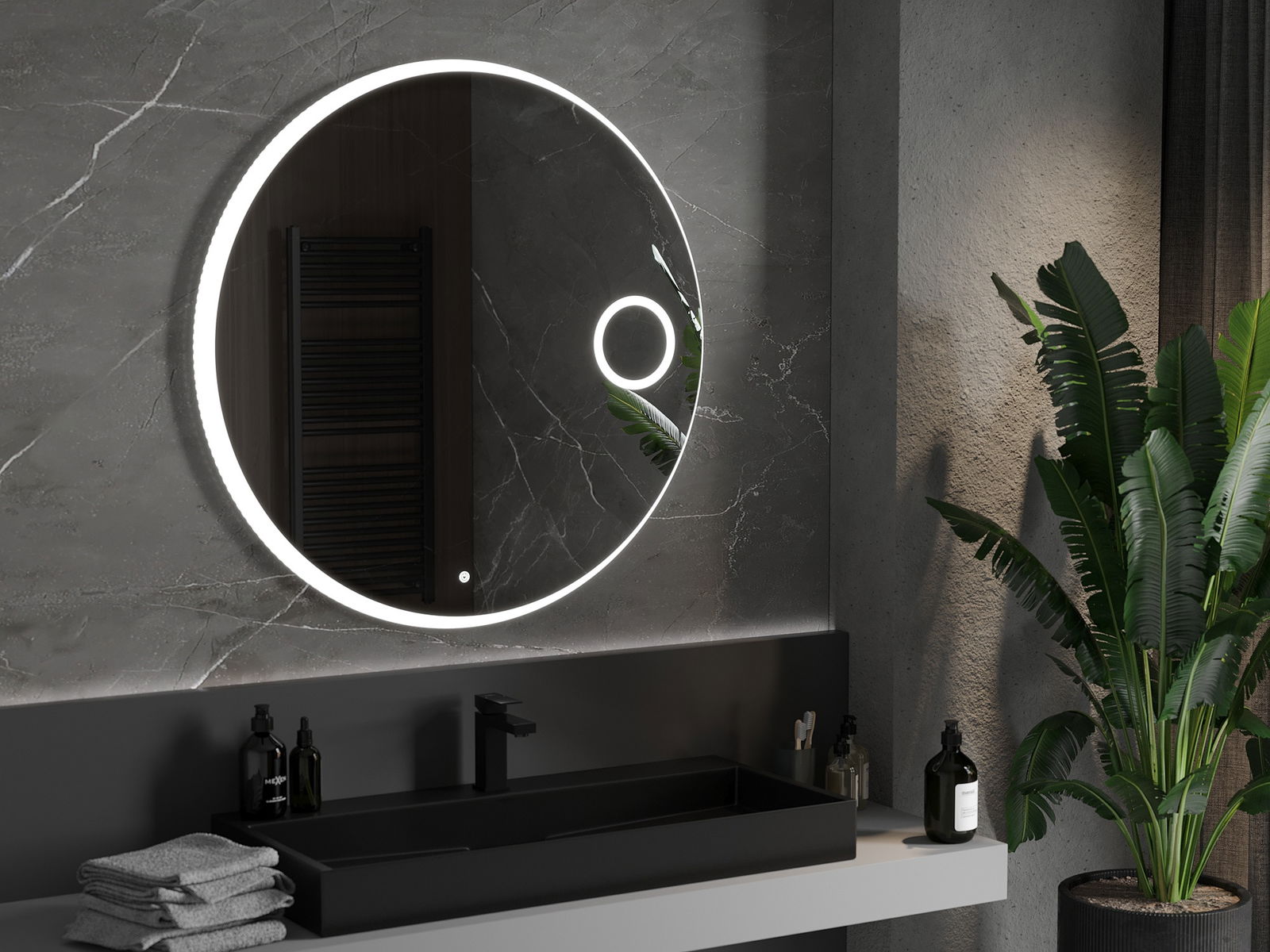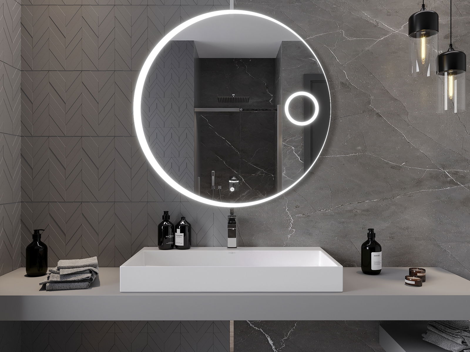 Mexen Ella osvetlené kúpeľňové zrkadlo s kozmetickým zrkadielkom, okrúhle 100 cm, LED 6000K, proti zahmlievaniu
