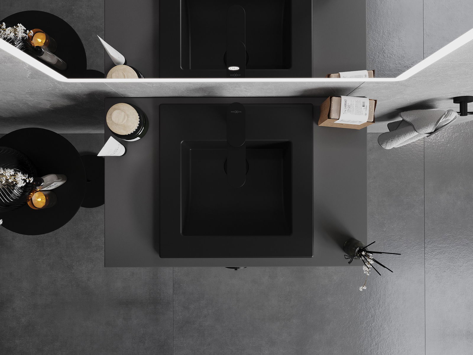 Umývadlo má otvor, do ktorého môžeme nainštalovať batériu. To umožňuje ušetriť cenný priestor v kúpeľni a zdôrazniť jej estetiky. Toto riešenie tiež umožňuje jednoduchšie udržiavanie čistoty okolo umývadla.