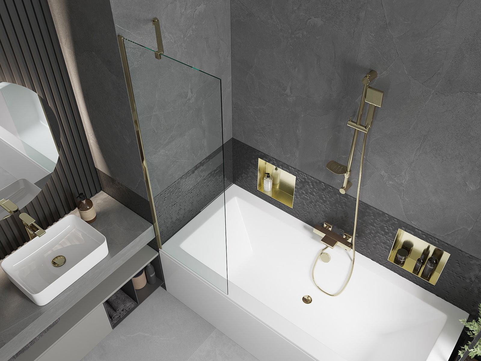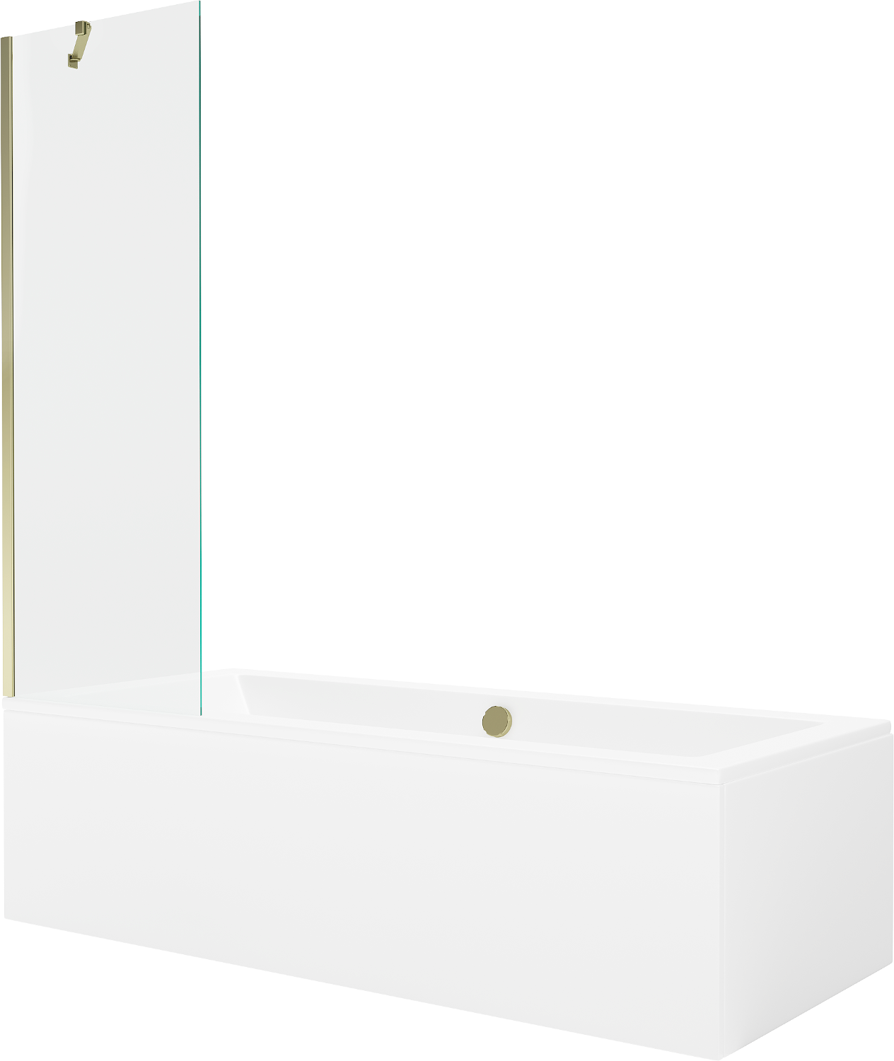 Mexen Cube rektangulárna vaňa 170 x 80 cm s krytom a 1-krídlovou zástenou 60 cm, transparentná, zlatá