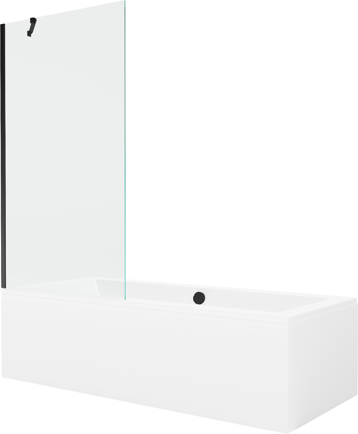 Mexen Cube obdĺžniková vaňa 170 x 80 cm s opláštením a 1-krídlovou zástenou 90 cm, transparentná, čierna - 550517080X9509000070