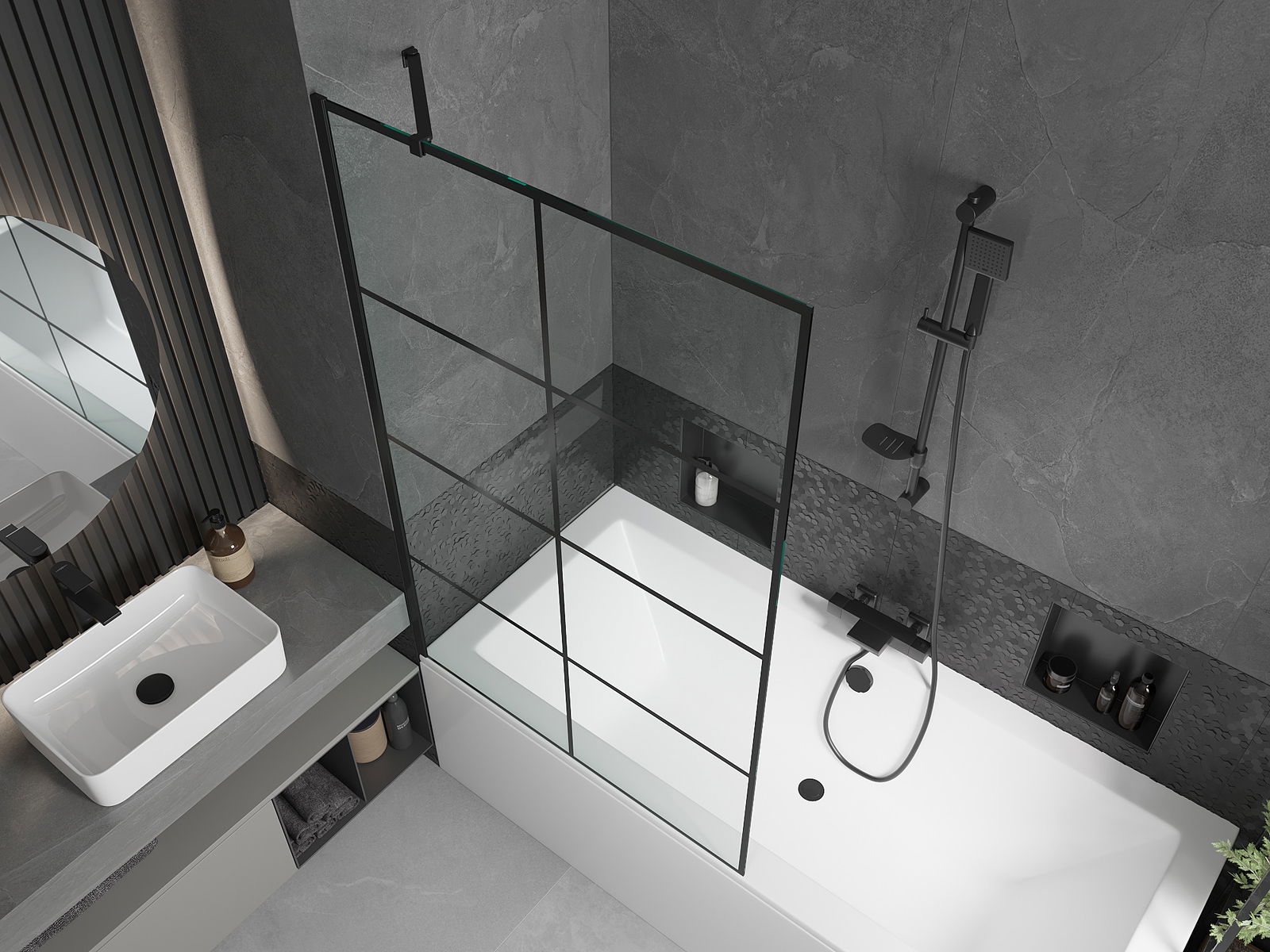 Mexen Cube obdĺžniková vaňa 170 x 80 cm s obložením a 1-krídlovou zástenou 100 cm, čierny vzor - 550517080X9510007077