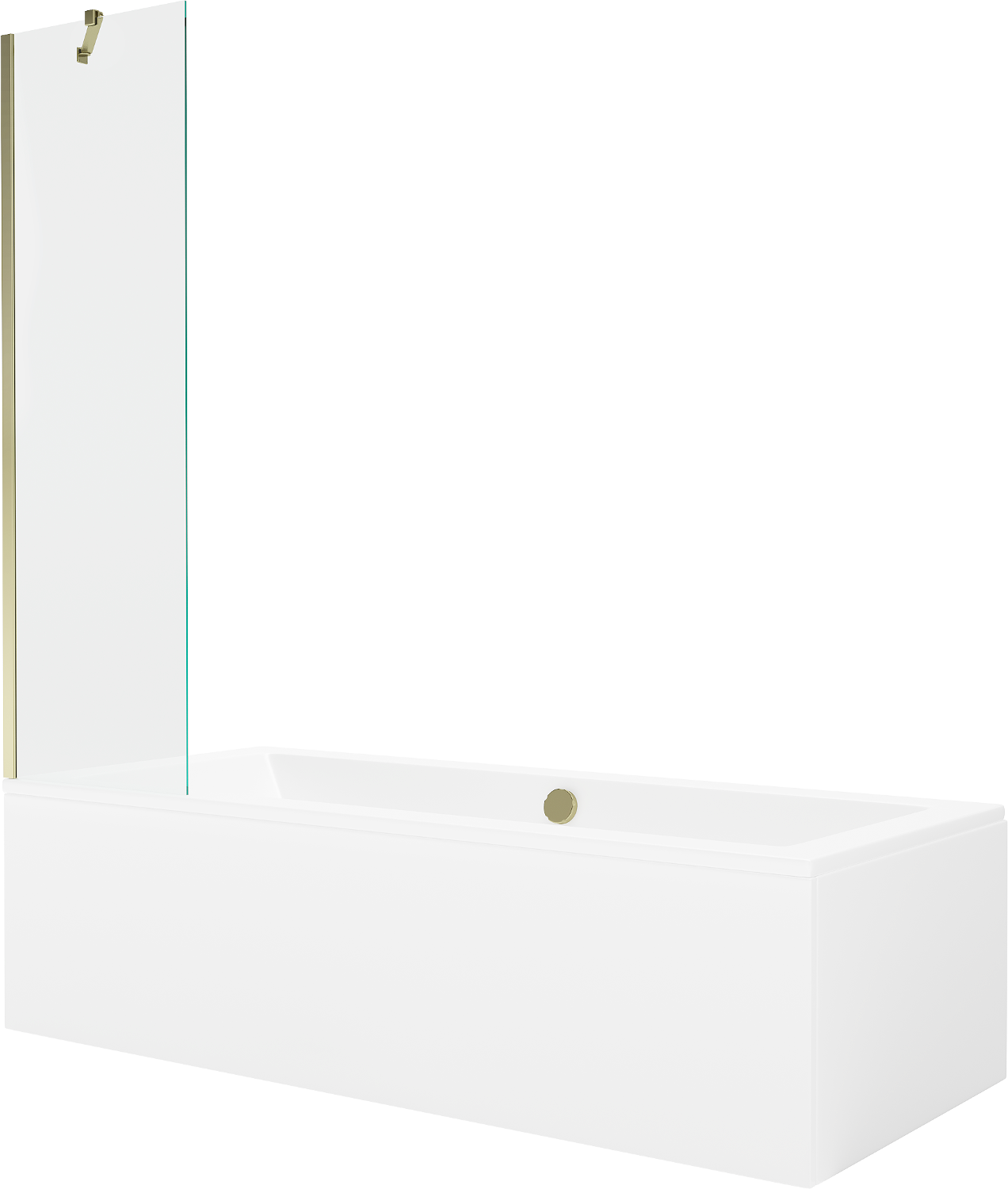 Mexen Cube obdĺžniková vaňa 180 x 80 cm s panelom a 1-krídlovým závesom 50 cm, transparentná, zlatá - 550518080X9505000050
