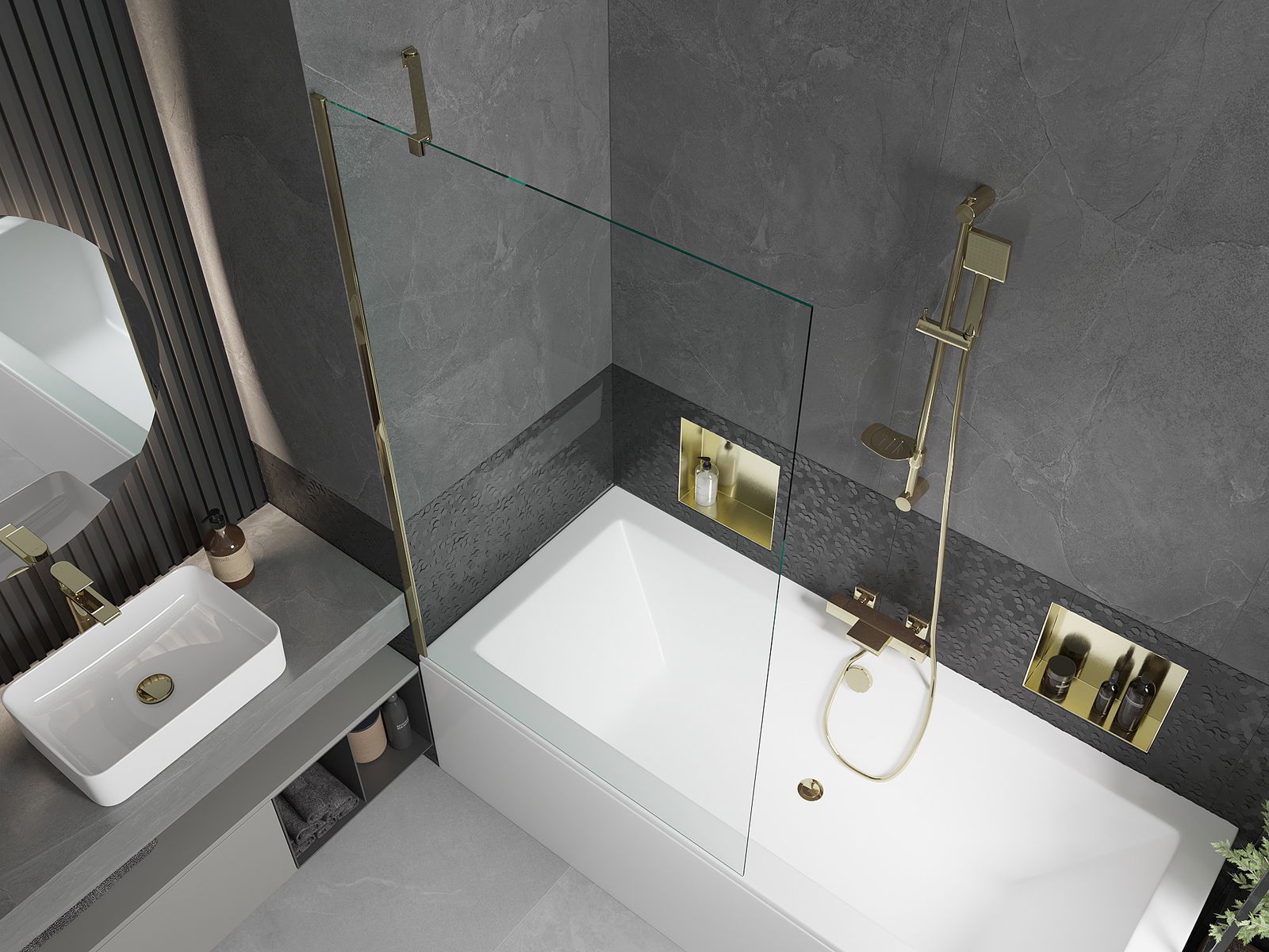 Mexen Cube obdĺžniková vaňa 180 x 80 cm s krytom a jedným krídlom zásteny 100 cm, transparentná, zlatá - 550518080X9510000050