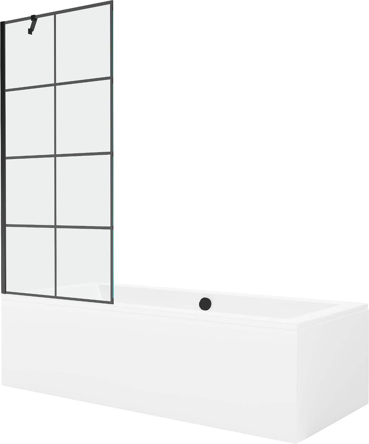Mexen Cube obdĺžniková vaňa 180 x 80 cm s krytom a 1-krídlovým zástenom 80 cm, čierny vzor - 550518080X9508007077