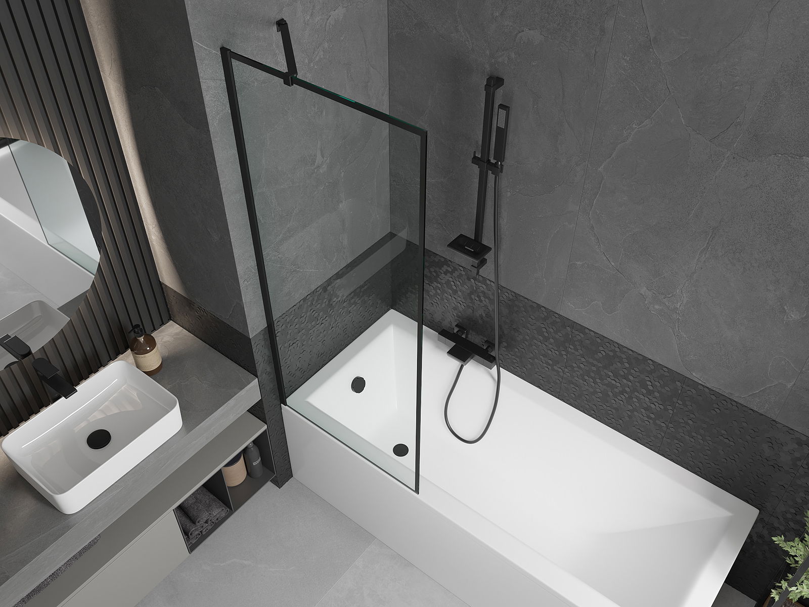 Účinná ochrana pred rozliatím vody počas kúpania. Obrazovka obsahuje tesnenia, ktoré sa dokonale prispôsobia pohárovi skla a okraja vane. Funkčné riešenie zabezpečujúce bezpečnosť a ľahkú údržbu.