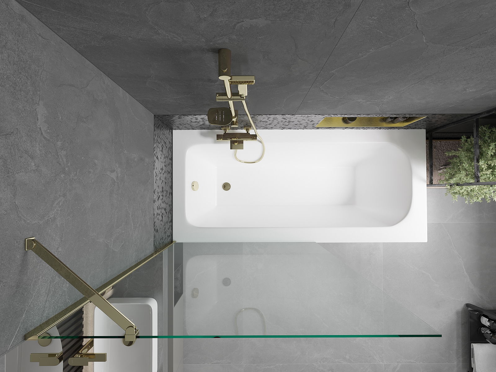 Mexen Vega obdĺžniková vaňa 150 x 70 cm s obložením a 1-krídlovou zástenou 100 cm, transparentná, zlatá