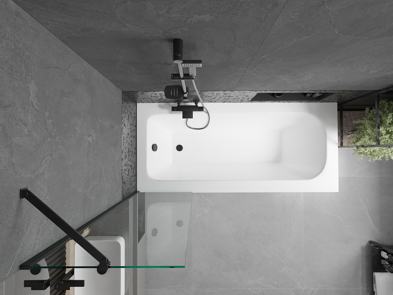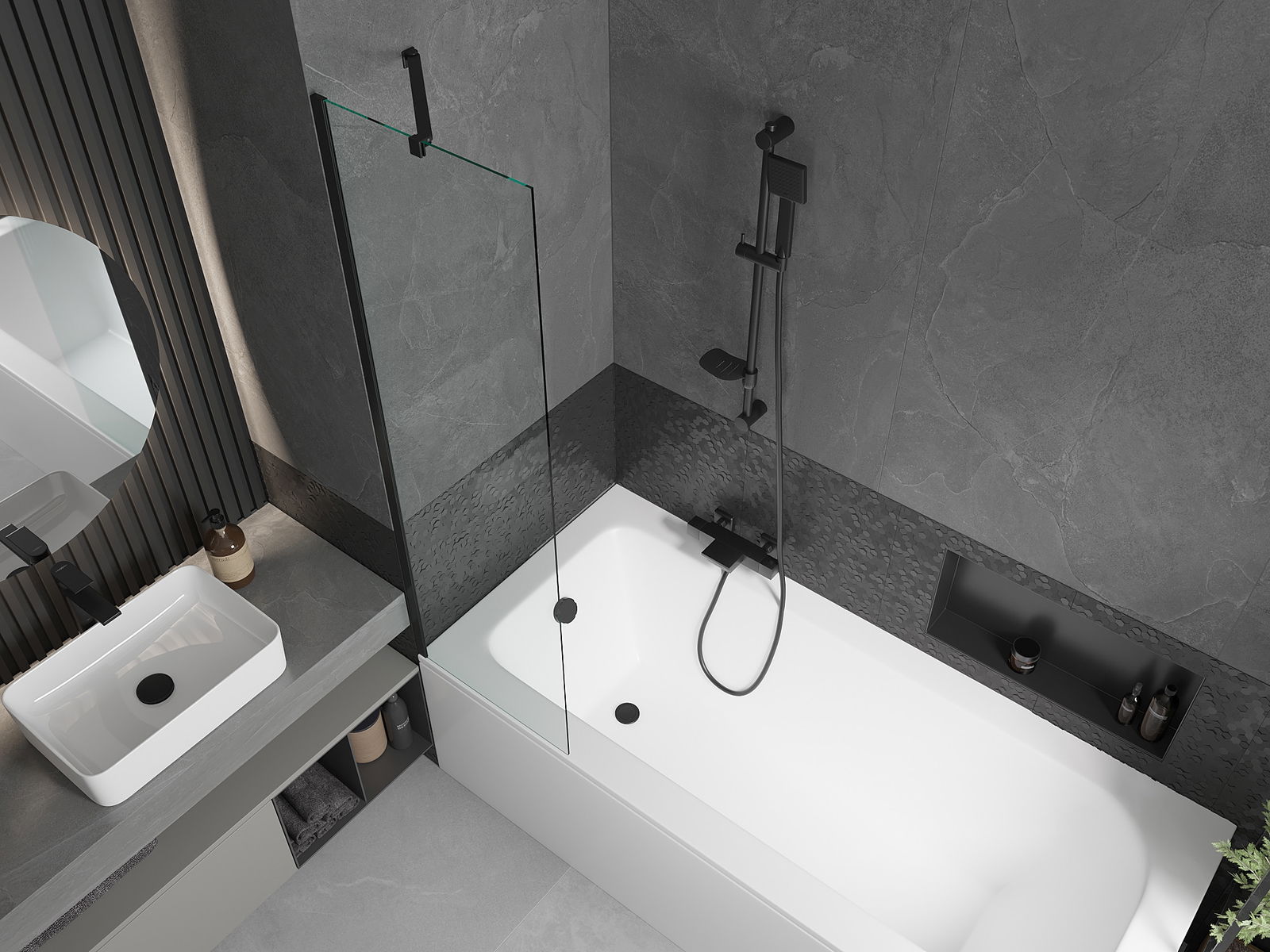 Mexen Vega obdĺžniková vaňa 150 x 70 cm s krytom a 1-krídlovou zástenu 50 cm, transparentná, čierna