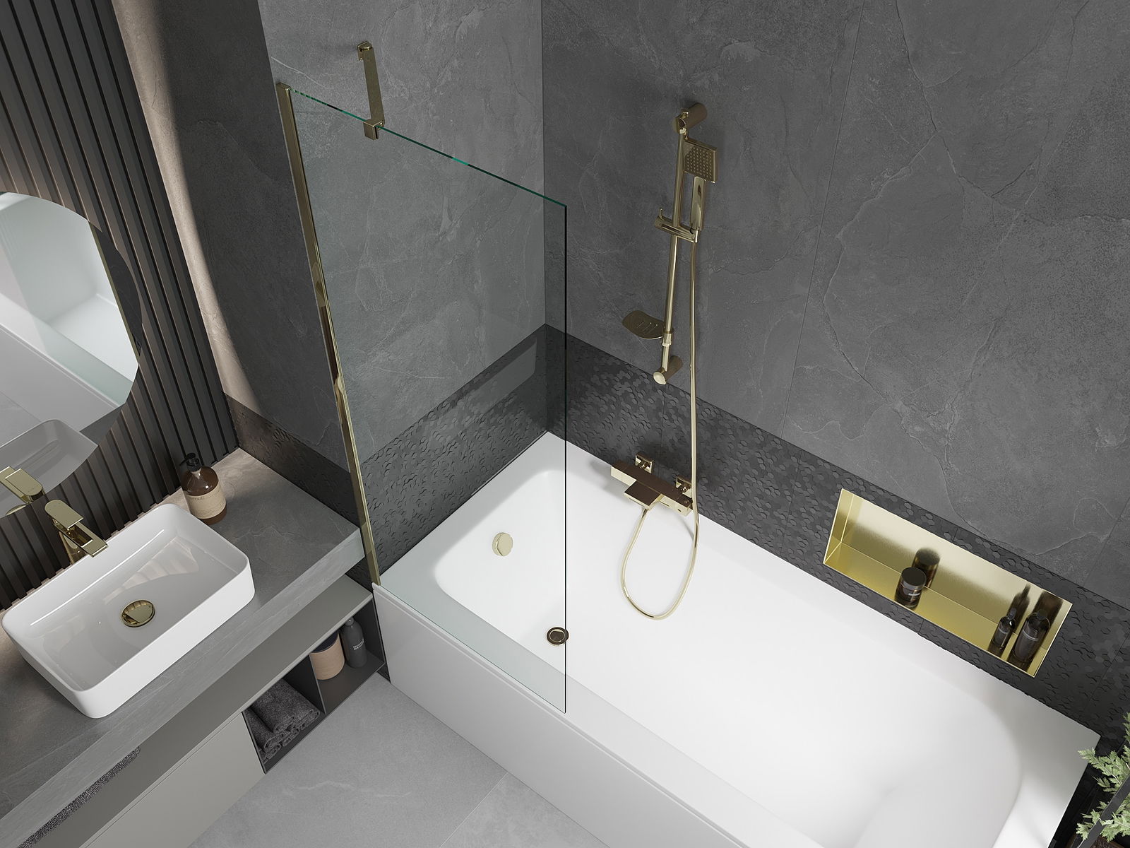 Mexen Vega obdĺžniková vaňa 160 x 70 cm s panelom a 1-krídlovou zástenou 70 cm, priehľadná, zlatá - 550116070X9507000050