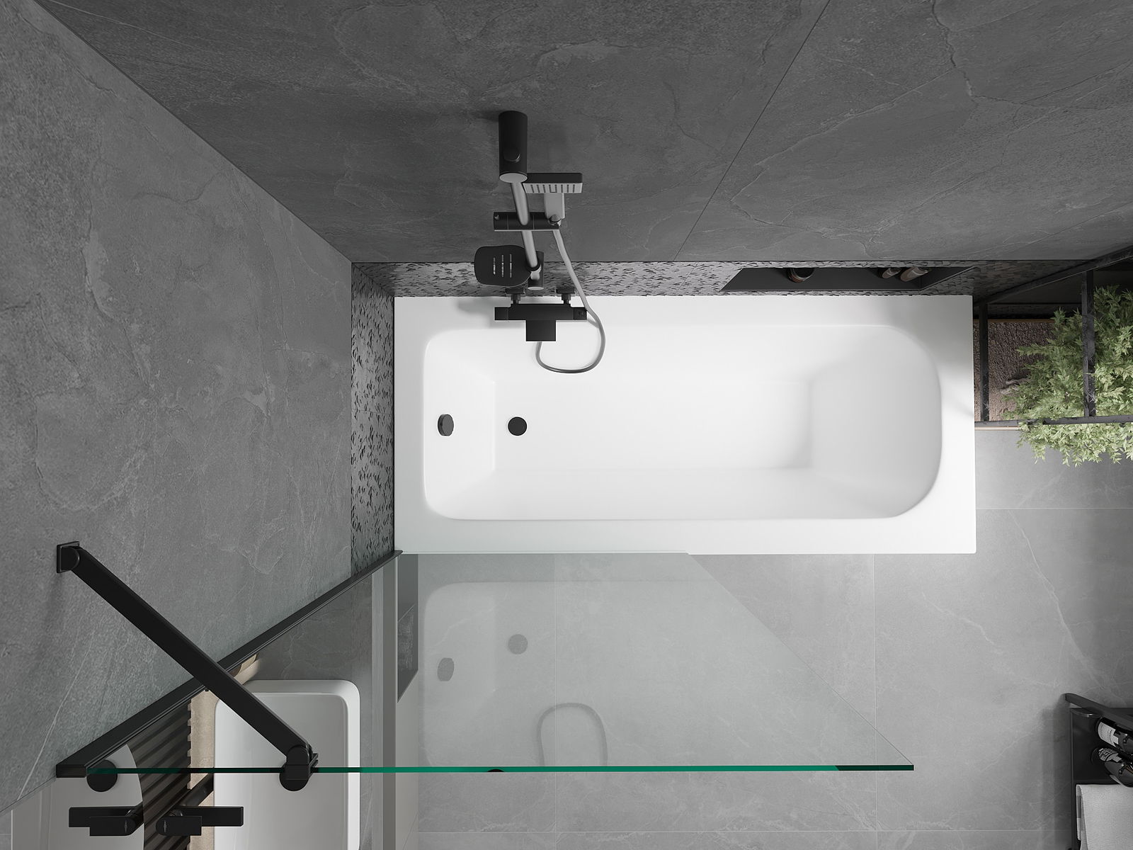 Mexen Vega obdĺžniková vaňa 160 x 70 cm s krytom a 1-krídlovou zástenou 90 cm, transparentná, čierna
