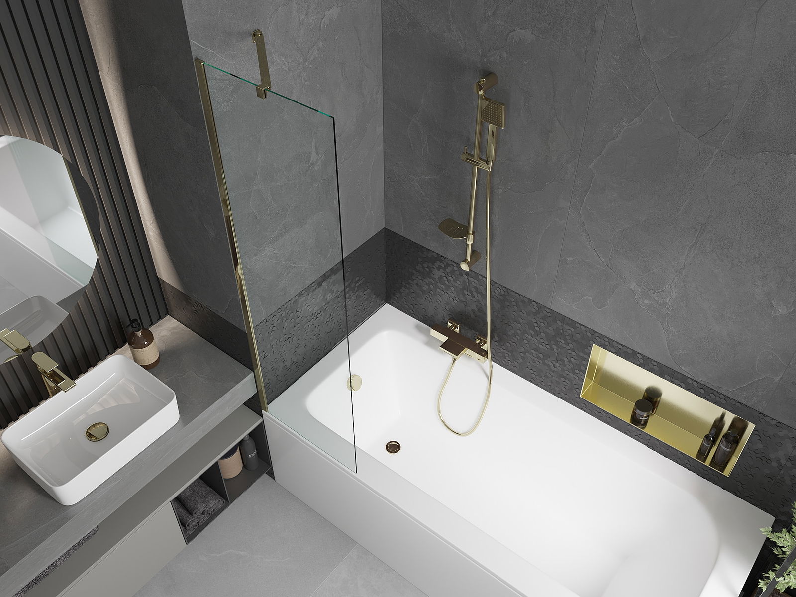 Mexen Vega obdĺžniková vaňa 170 x 70 cm s obložením a 1-krídlovým zástenou 50 cm, transparentná, zlatá - 550117070X9505000050