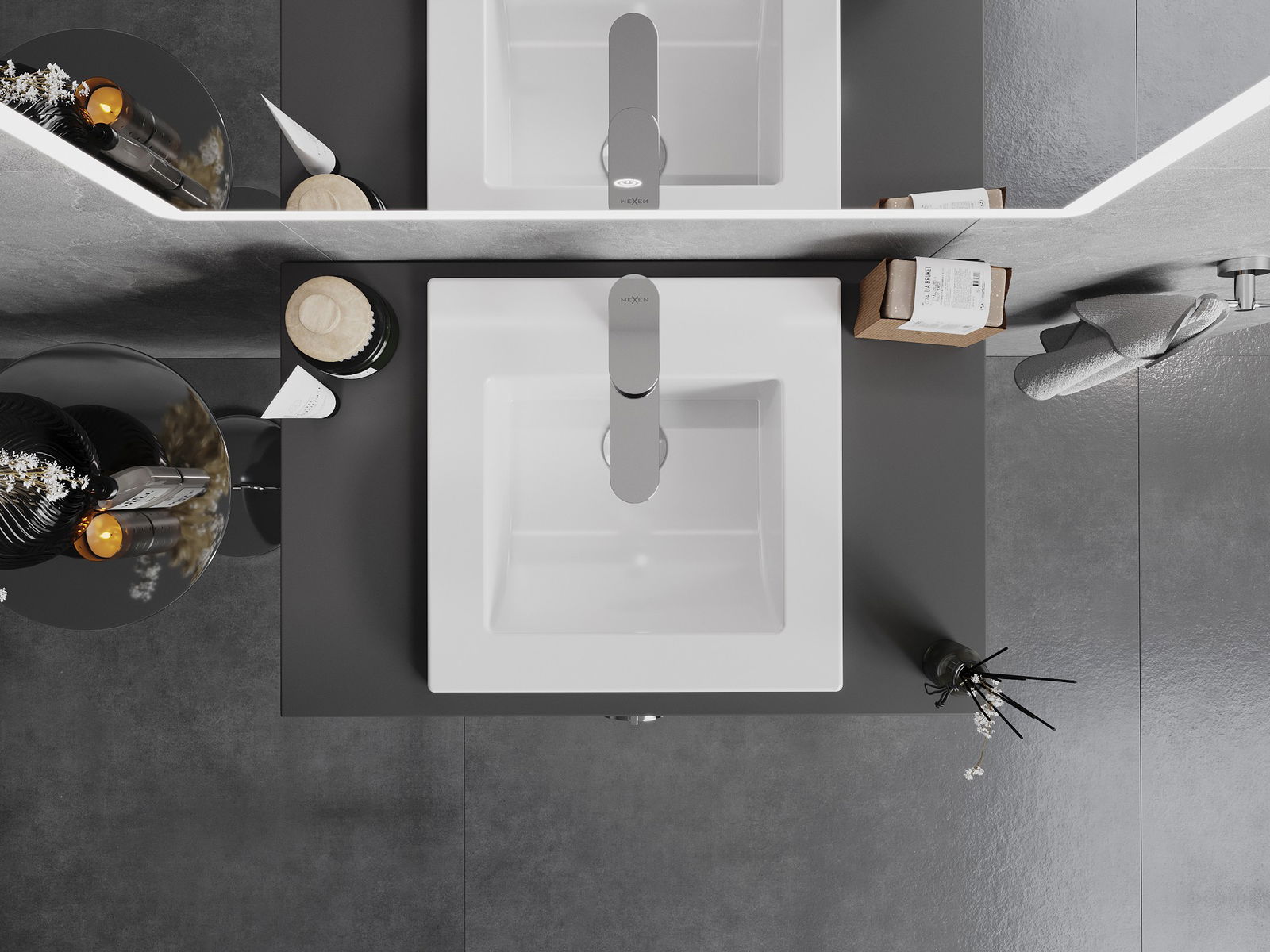 Umývadlo má otvor, do ktorého môžeme nainštalovať batériu. To umožňuje ušetriť cenný priestor v kúpeľni a zdôrazniť jej estetiky. Toto riešenie tiež umožňuje jednoduchšie udržiavanie čistoty okolo umývadla.