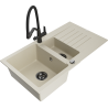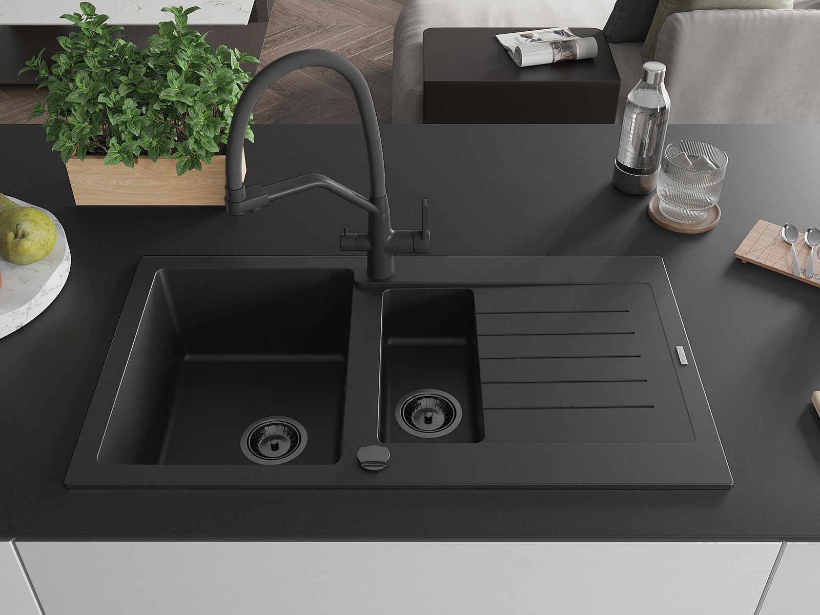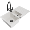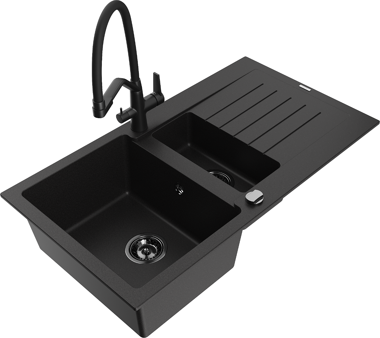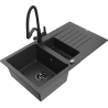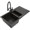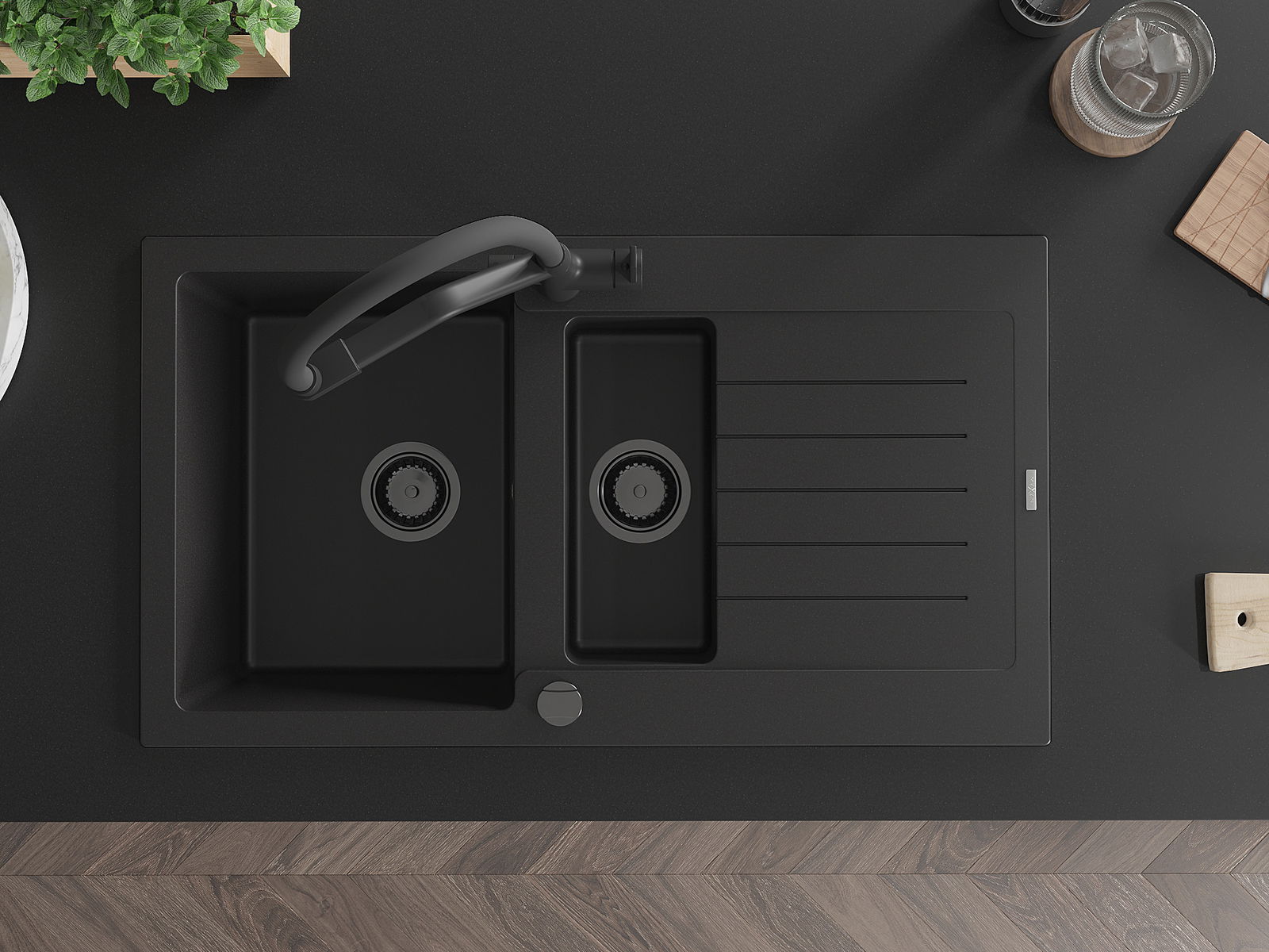 Mexen Matias žulový drez s 1,5 komorou s odkvapkávačom a kuchynskou batériou Duo, čierna - 6502-77-671701-70-B