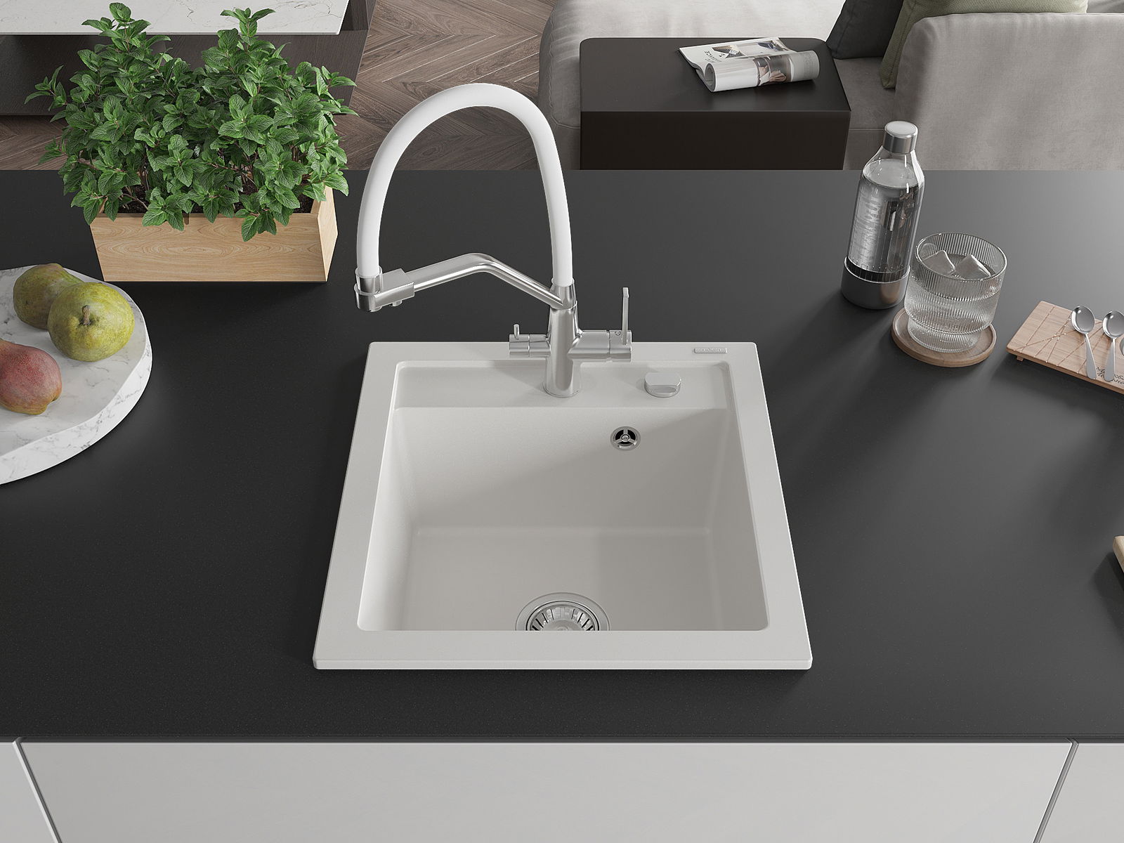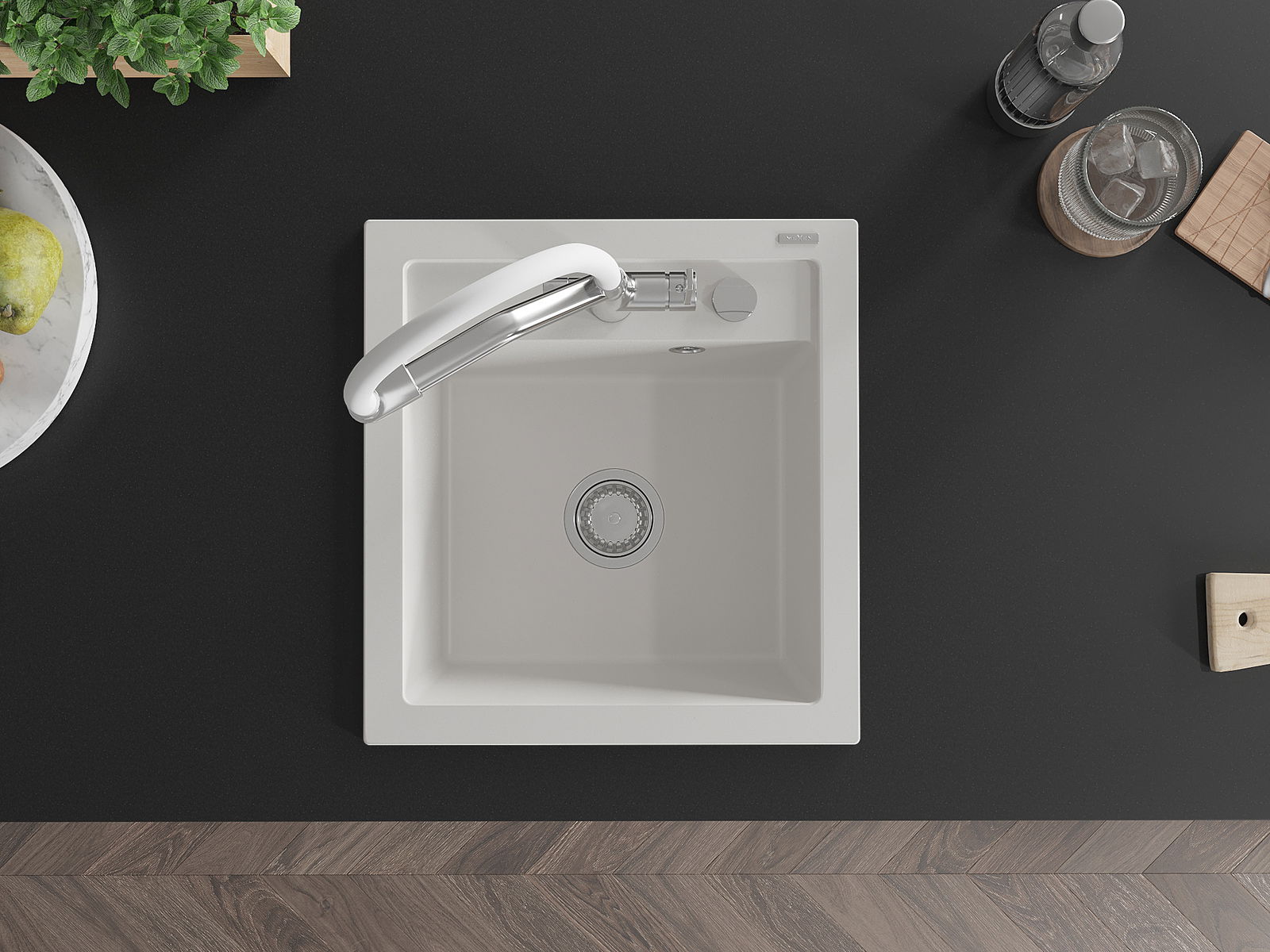 Povrch umývadla je odolný voči škvrnám a sfarbeniu, vďaka čomu sa ľahko čistí a zachováva si svoju farbu po dlhú dobu. Estetický a prakticky dopĺňajúci každú kuchyňu.