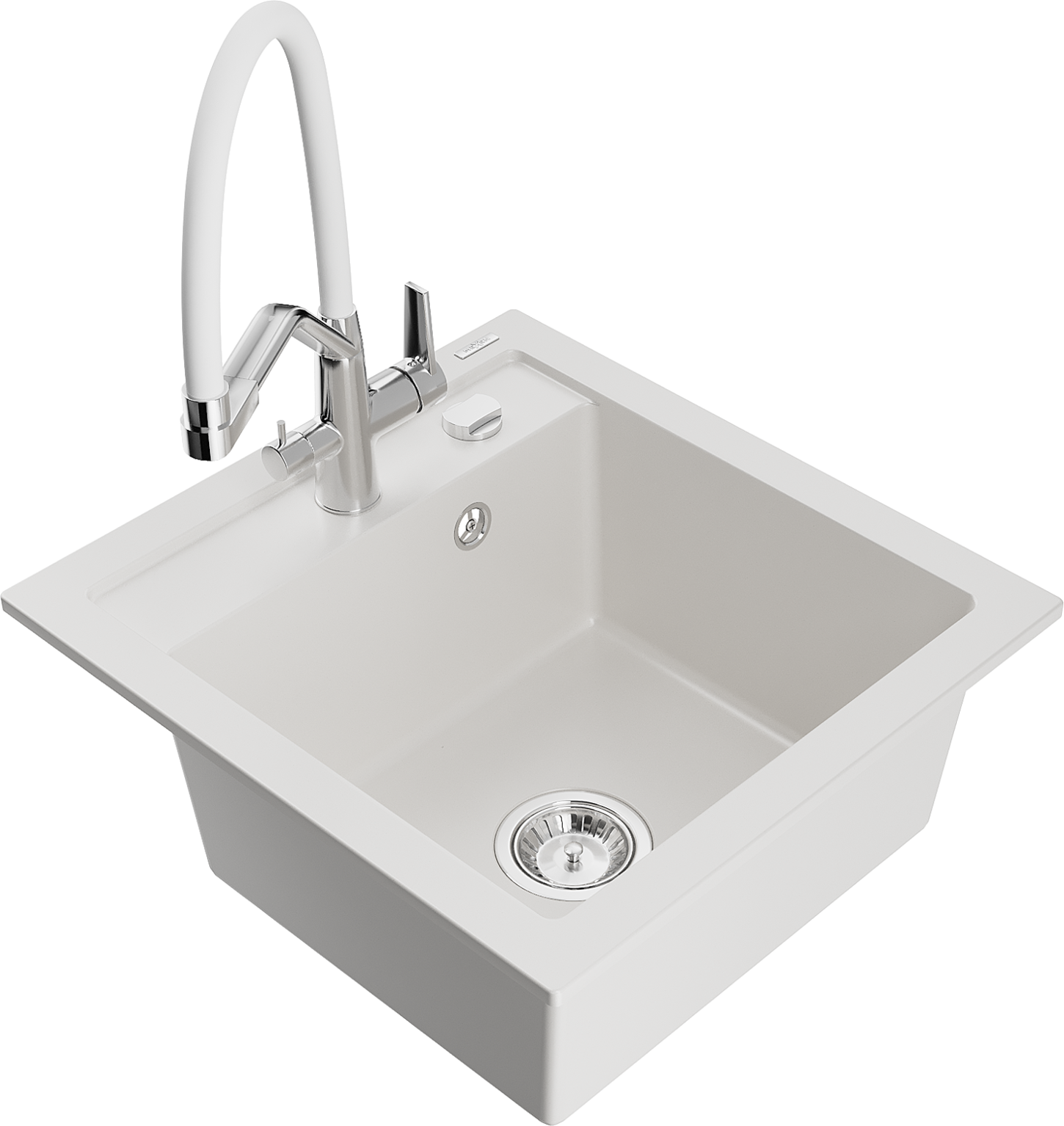 Mexen Vito žulový drez s 1 komorou s kuchynskou batériou Duo, biely - 6503-20-671701-02