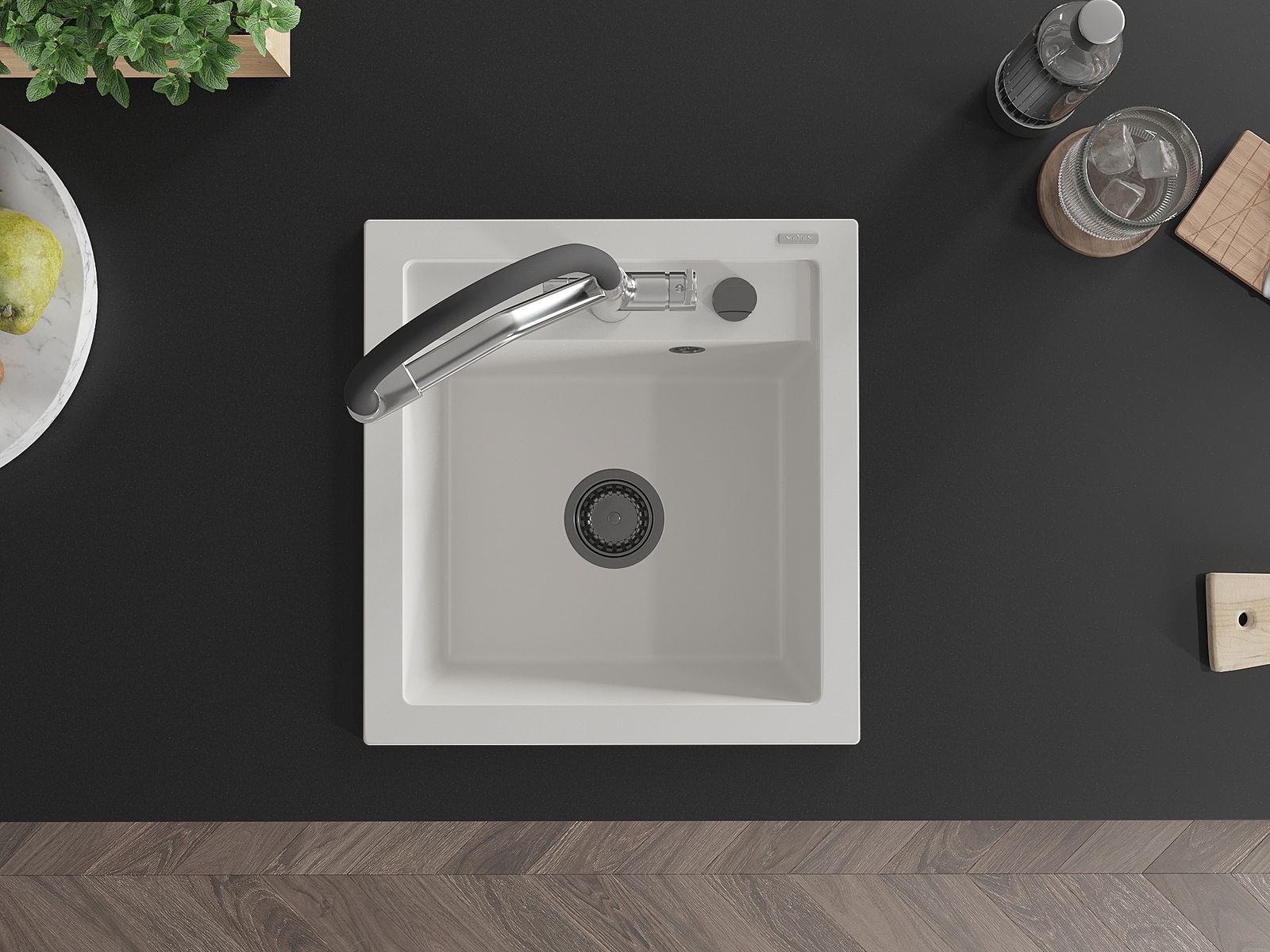 Povrch umývadla je odolný voči škvrnám a sfarbeniu, vďaka čomu sa ľahko čistí a zachováva si svoju farbu po dlhú dobu. Estetický a prakticky dopĺňajúci každú kuchyňu.