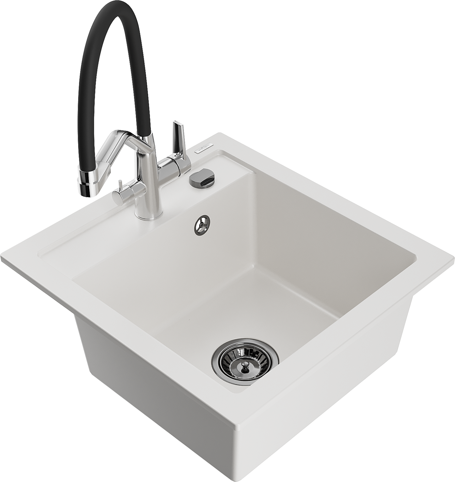 Mexen Vito jednokomorový žulový drez s kuchynskou batériou Duo, biely - 6503-20-671701-07-B