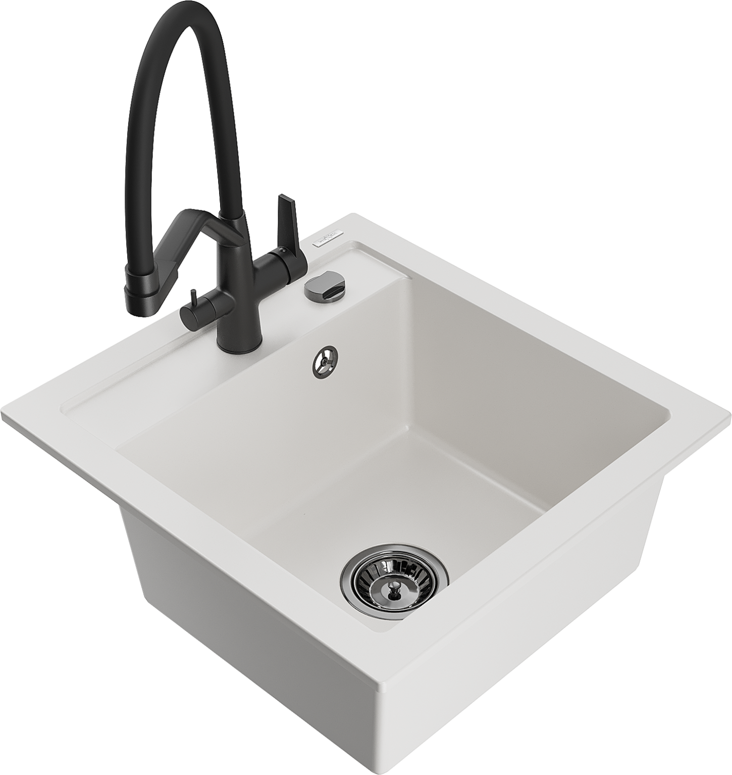 Mexen Vito granitový drez 1-komorový s kuchynskou batériou Duo, biely - 6503-20-671701-70-B