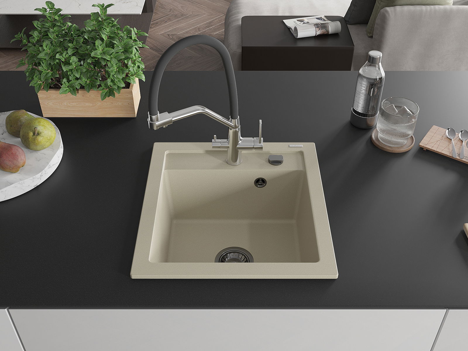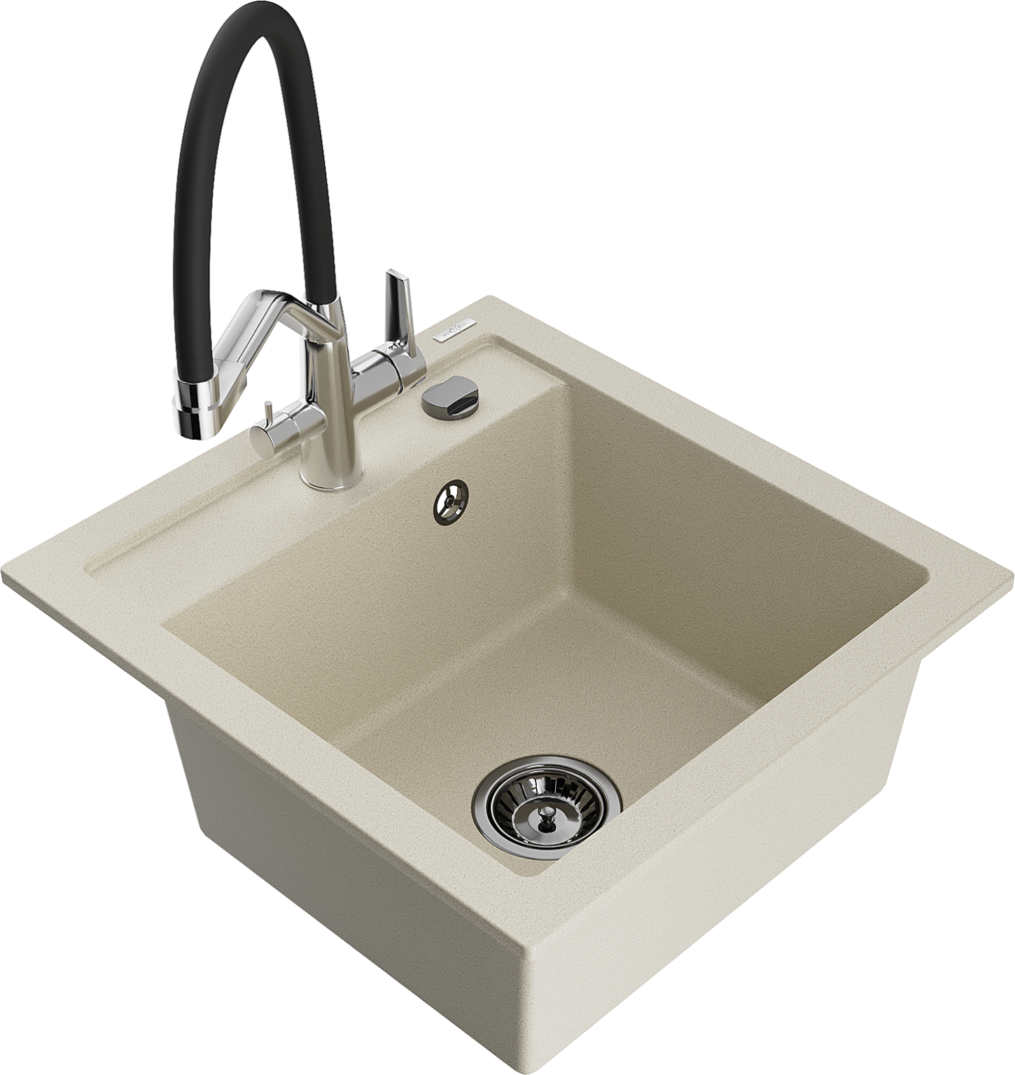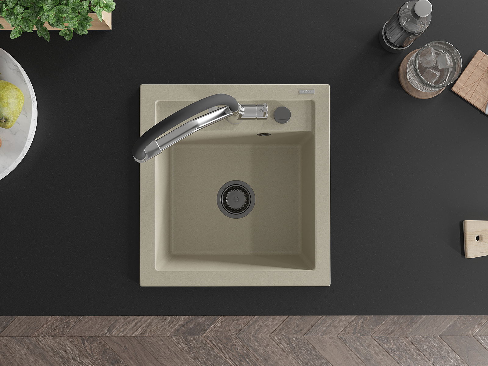 Mexen Vito granitový drez 1-komorový s kuchynskou batériou Duo, béžový - 6503-69-671701-07-B
