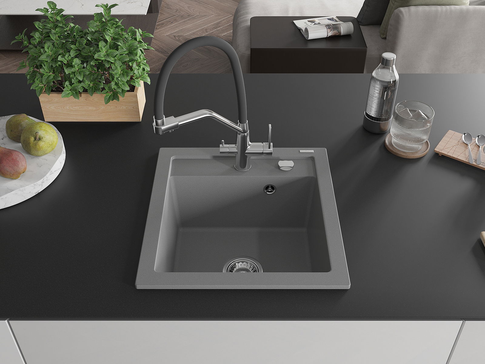 Povrch umývadla je odolný voči škvrnám a sfarbeniu, vďaka čomu sa ľahko čistí a zachováva si svoju farbu po dlhú dobu. Estetický a prakticky dopĺňajúci každú kuchyňu.