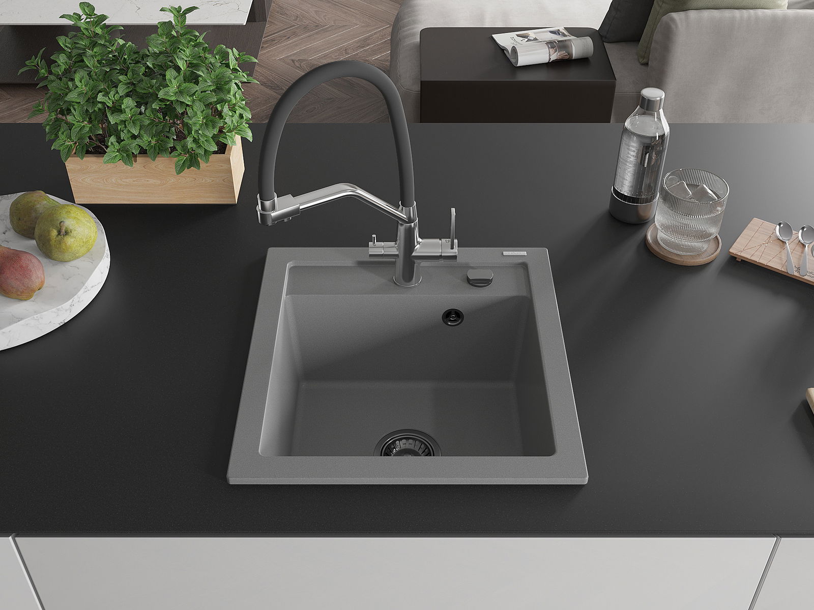 Povrch umývadla je odolný voči škvrnám a sfarbeniu, vďaka čomu sa ľahko čistí a zachováva si svoju farbu po dlhú dobu. Estetický a prakticky dopĺňajúci každú kuchyňu.