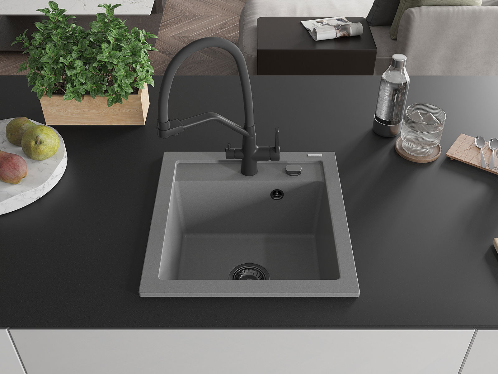 Povrch umývadla je odolný voči škvrnám a sfarbeniu, vďaka čomu sa ľahko čistí a zachováva si svoju farbu po dlhú dobu. Estetický a prakticky dopĺňajúci každú kuchyňu.