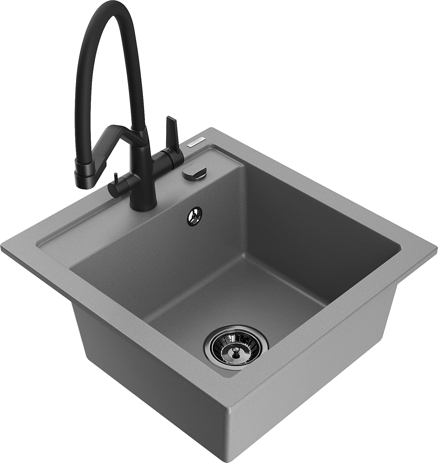 Mexen Vito granitový drez 1-komorový s kuchynskou batériou Duo, sivý - 6503-71-671701-70-B