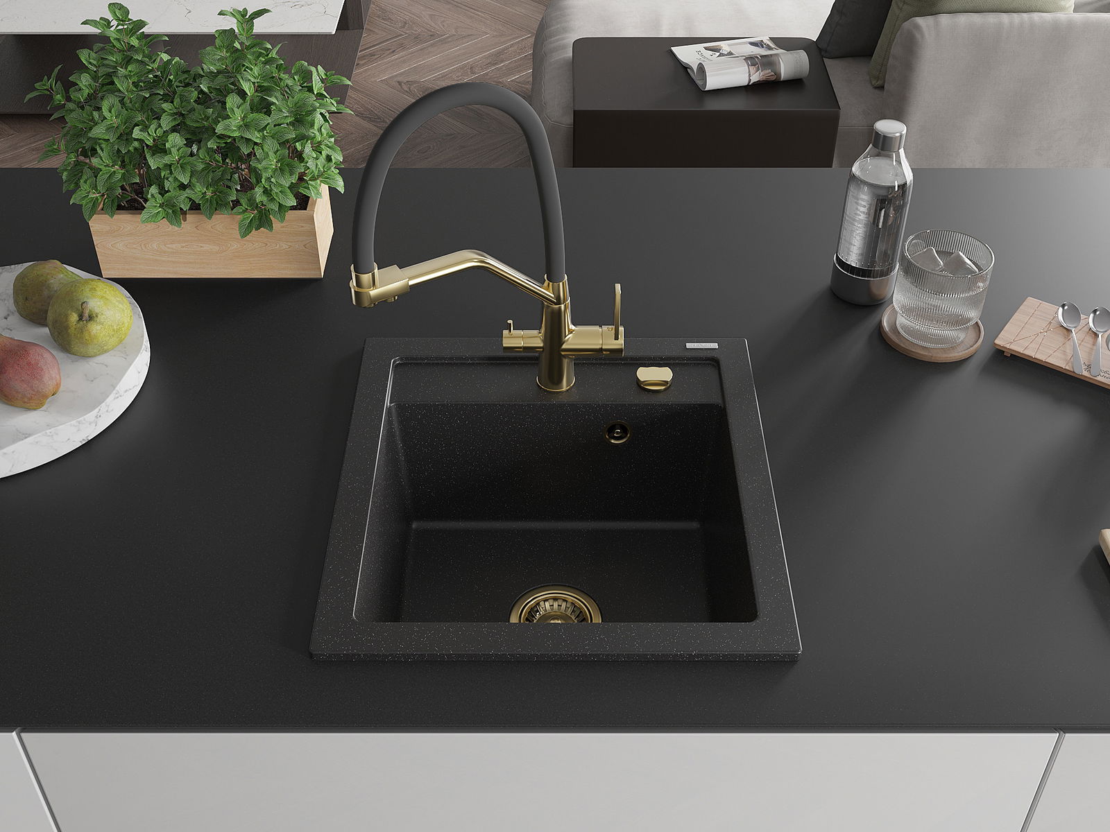 Drez má predfrézovaný otvor s priemerom 35 mm na samostatné prerazenie. Môže sa využiť napríklad na montáž dávkovača na tekutinu, ktorý eliminuje prítomnosť plastových fliaš v kuchyni a pridáva jej elegantné dokončenie.