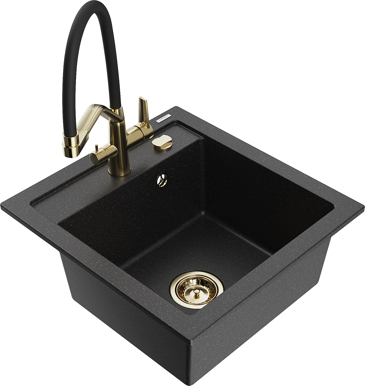 Mexen Vito jednokomorový žulový kuchynský drez s batériou Duo, čierna/strieborný metalik - 6503-73-671701-57-G