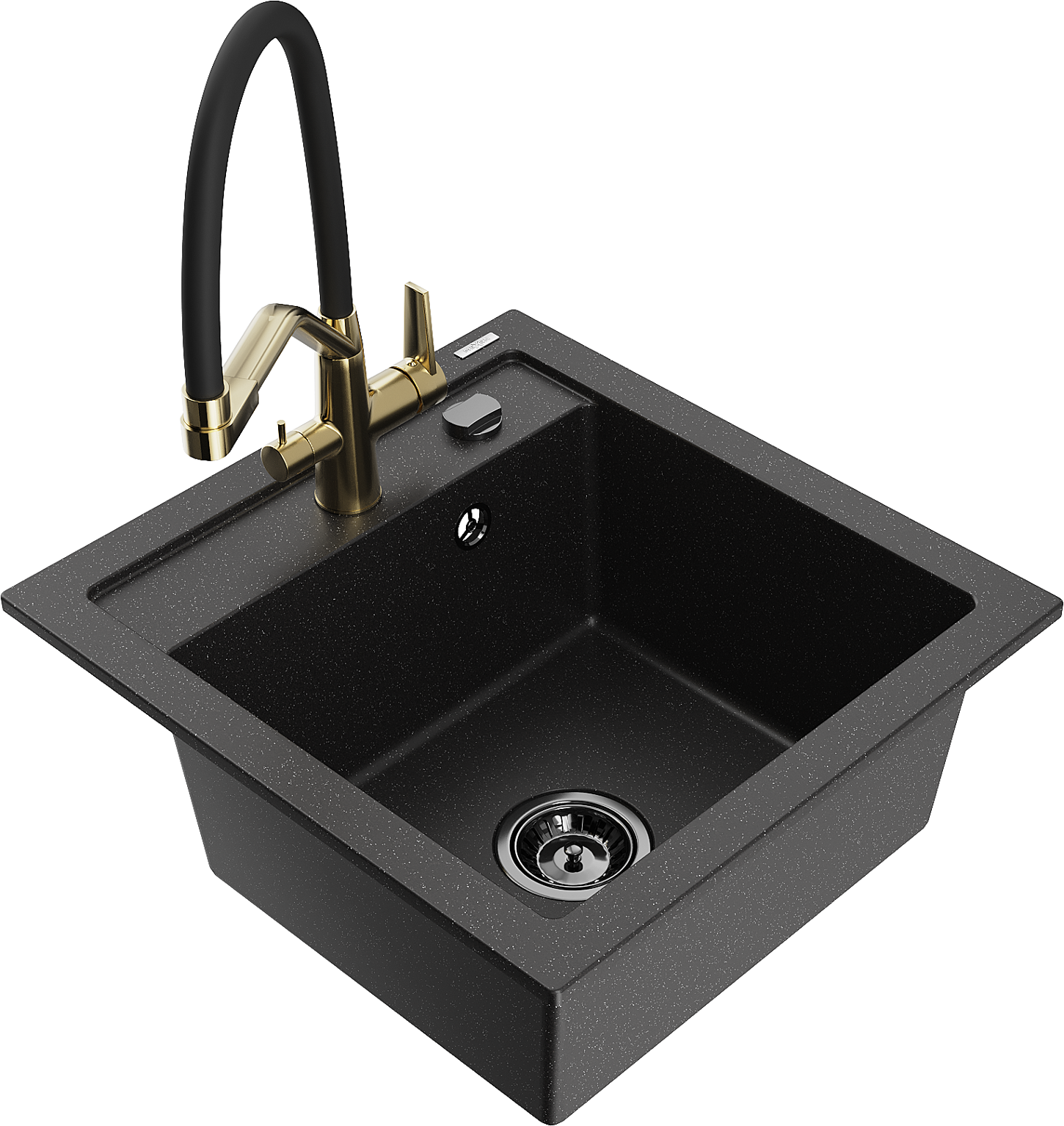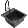 Mexen Vito žulový kuchynský drez 1-komorový s kupeľňovou batériou Duo, čierny/strieborný metalik - 6503-73-671701-57-B
