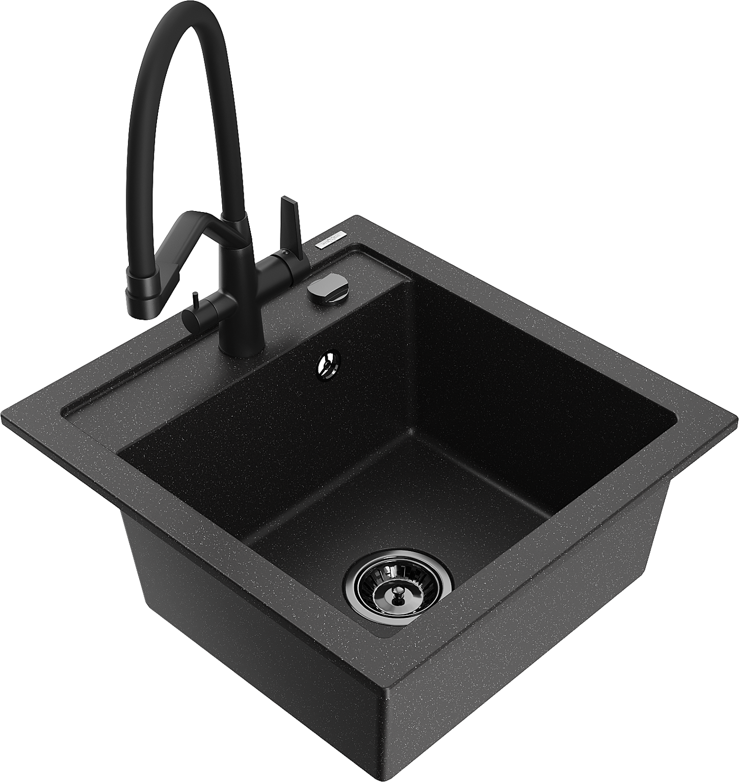 Mexen Vito granitový drez 1-komorový s kuchynskou batériou Duo, čierny/strieborný metalik - 6503-73-671701-70-B